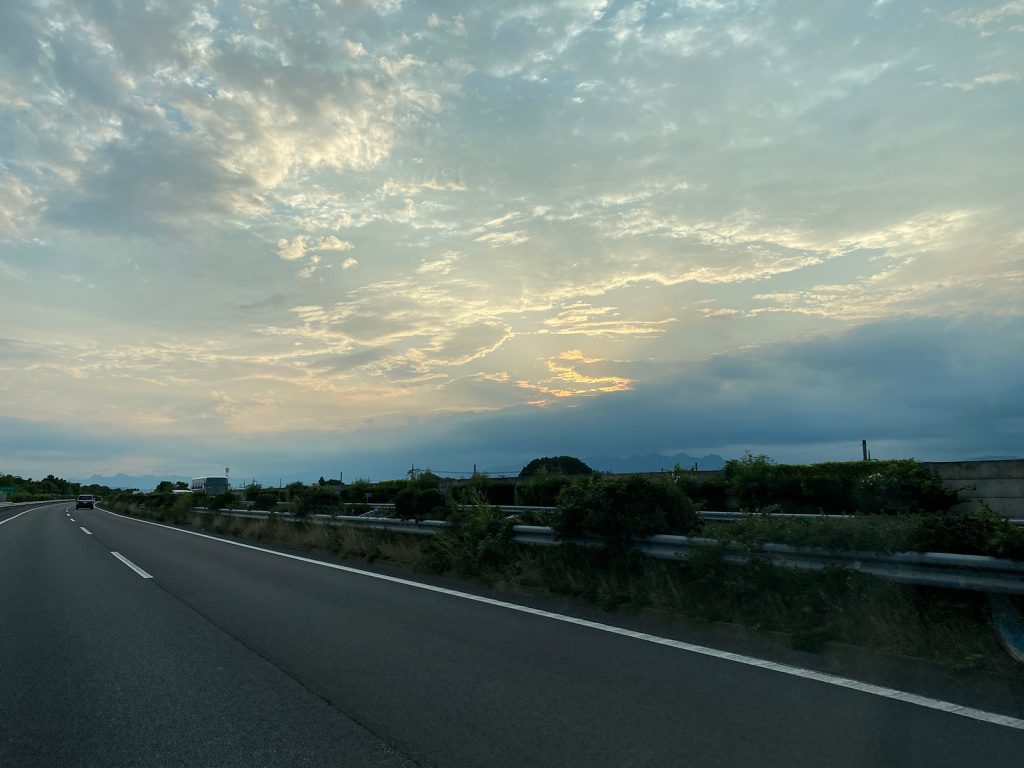 山頂は雨なんだろね、、、雲が厚く、夕日が出たいのに、出れない上空だわぁ〜、、