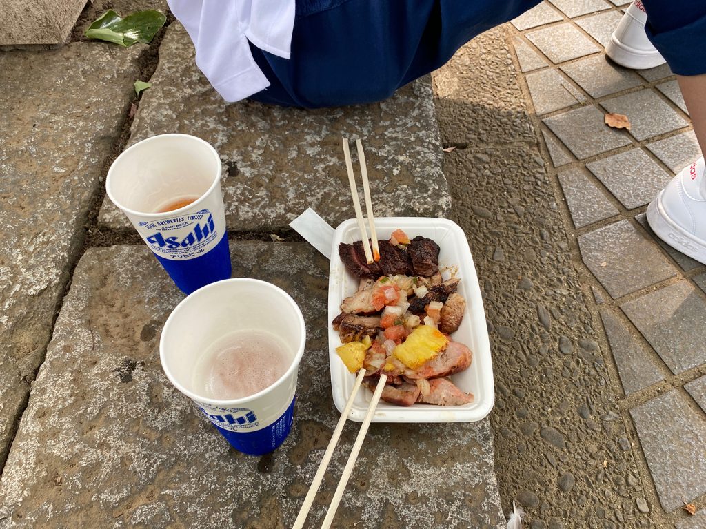 牛、豚、鶏、ソーセージ、焼パインで¥2000、イベント価格(_ _;;) 美味しかったけどね(∩_∩)