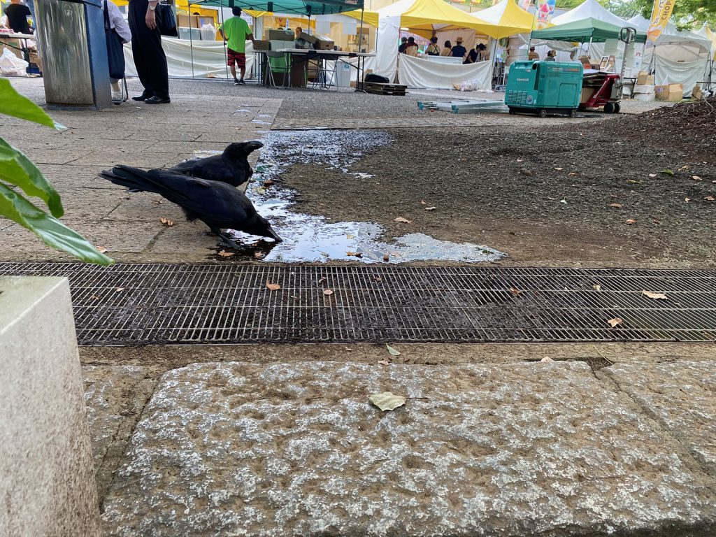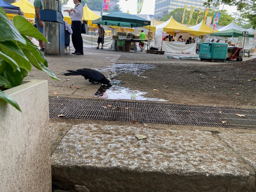 顔を横にして、カラスも水、飲むんだ!ってね(_ _;;)<そりゃ、飲むか…>