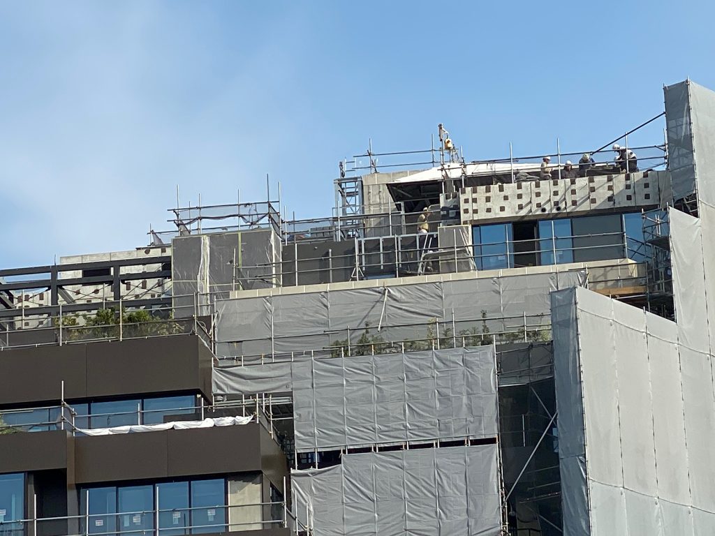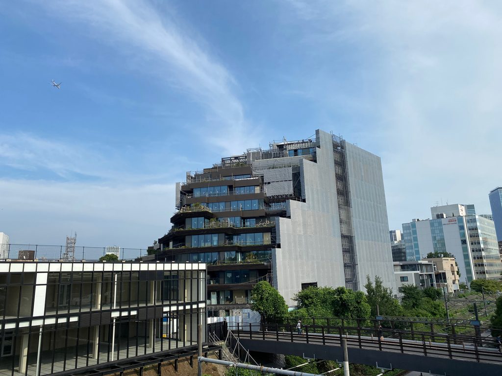 駅へ向かう歩道橋から__、建築中のビル