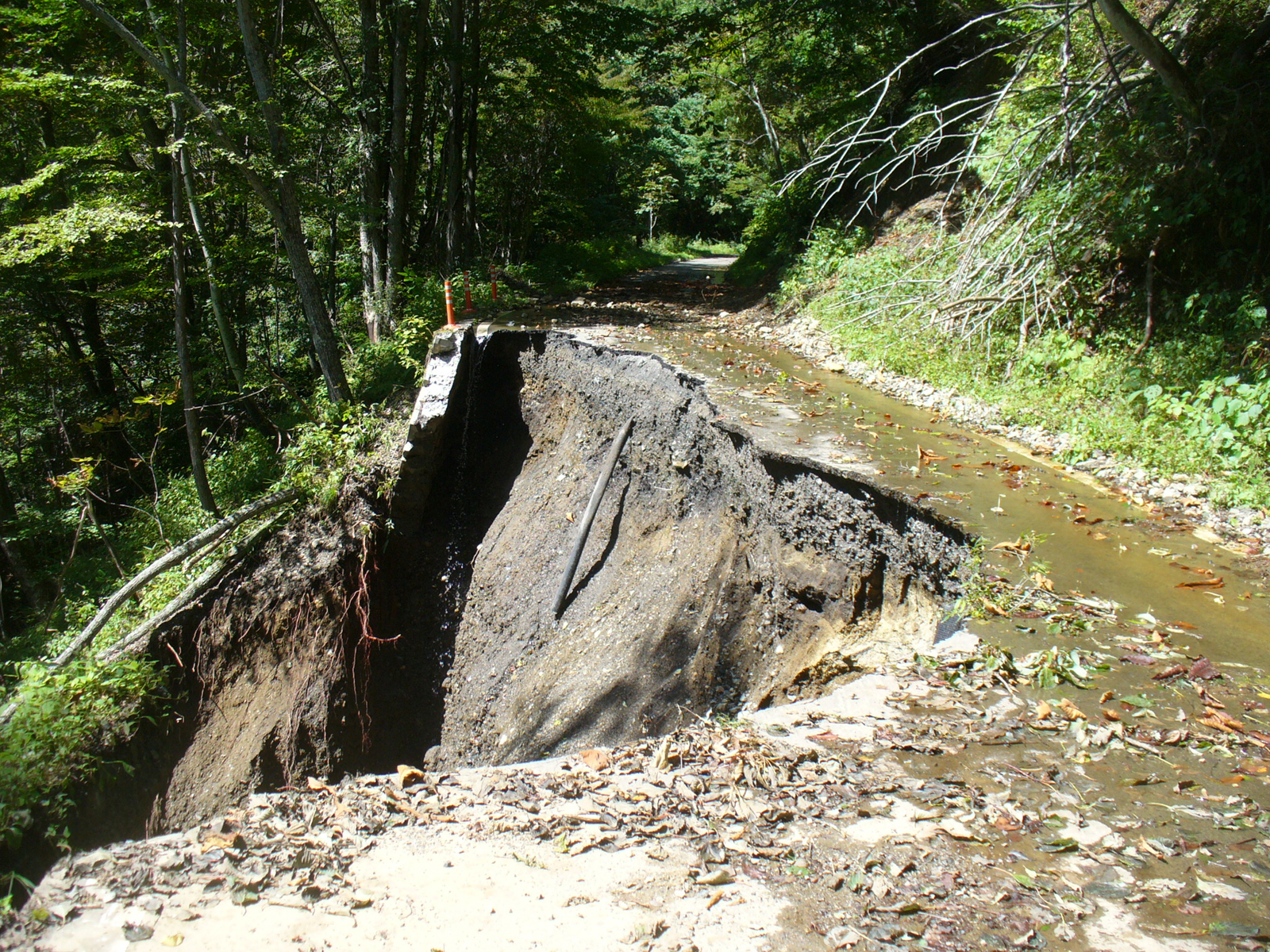 これは、完璧陥没だ。この脇も、バイクでは通れるが