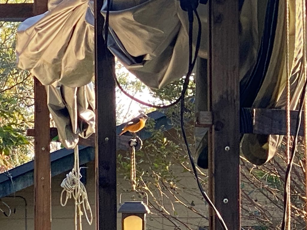 ググったら、『ジョウビタキ』秋から冬にかけて、シベリアからの渡り鳥〜<ヘェ〜>