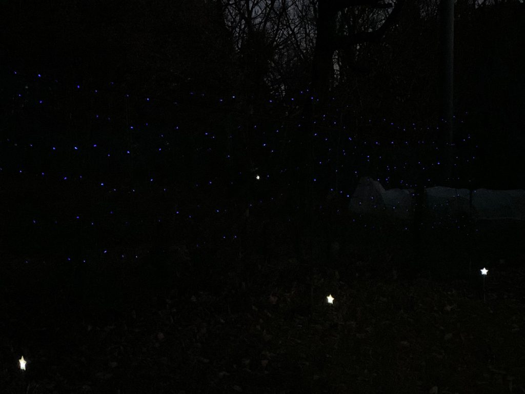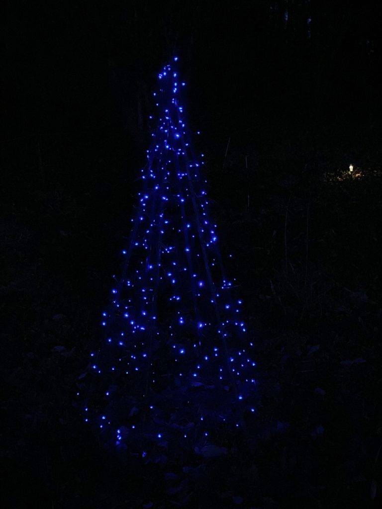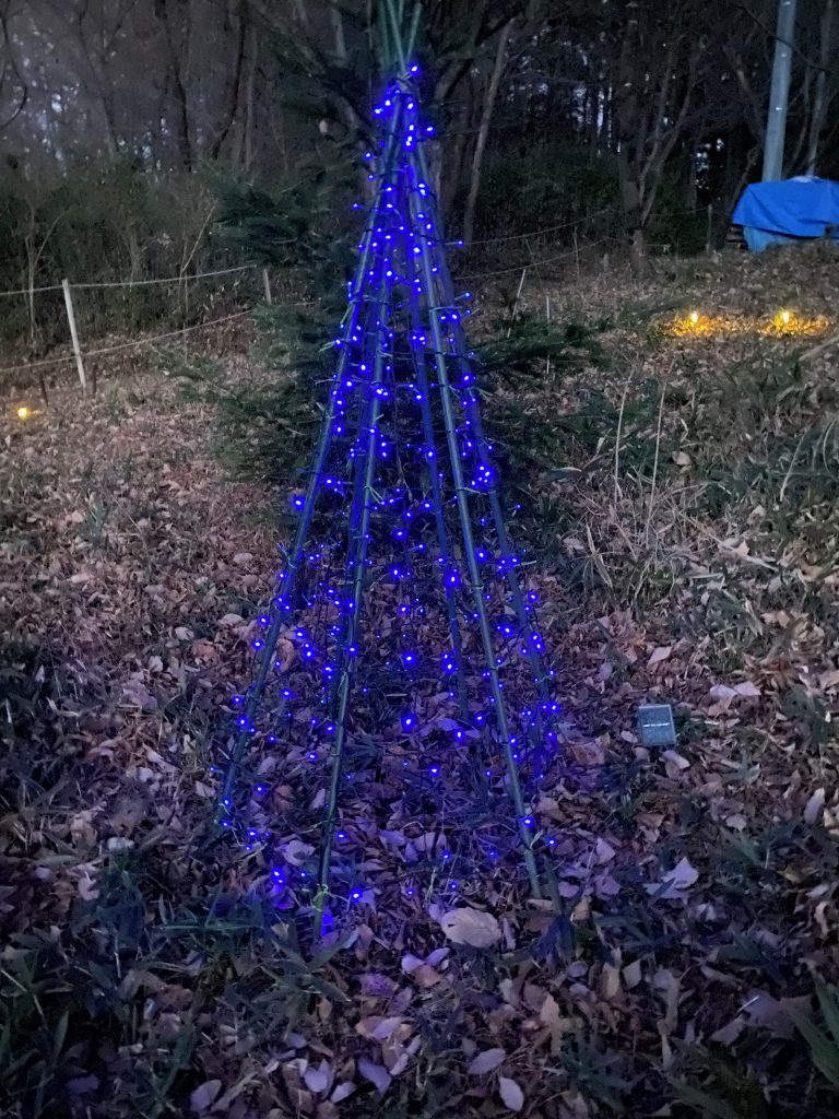 暗くなる前に、今年は、もみの木をやめて、隣のツリー型に組んでみた(^∀^;;)ゞ