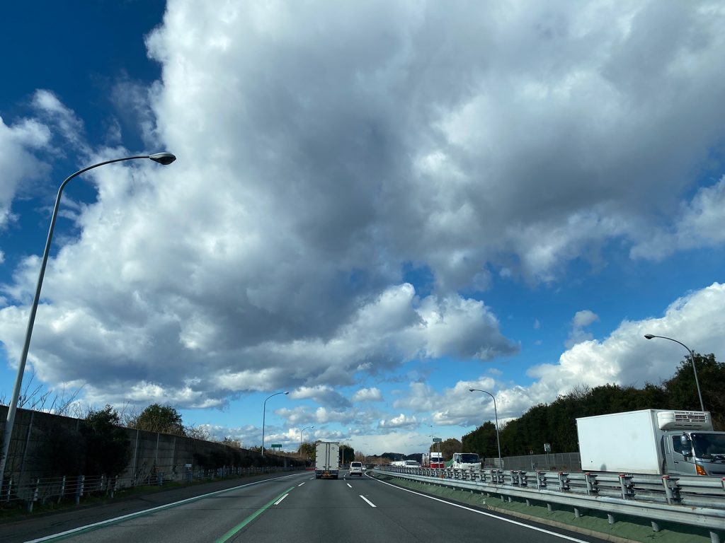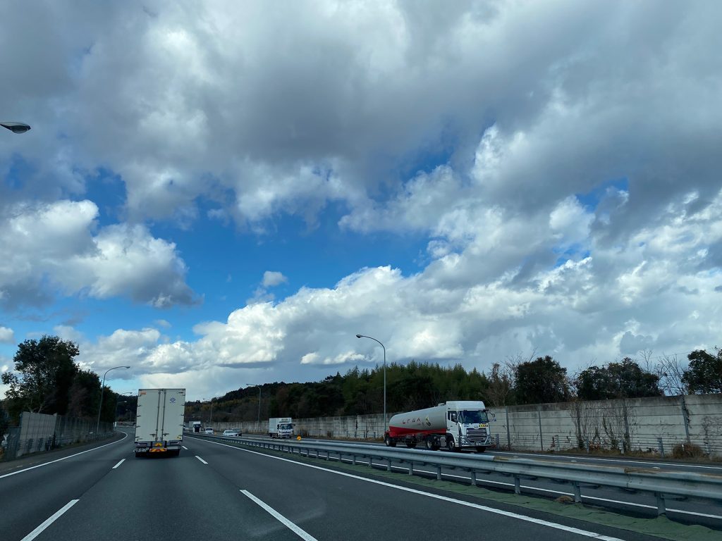 荒れた雲の先には、希望が持てるような夕陽、、高いドライブなので
