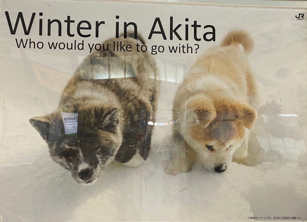 職場の駅構内のポスター、、JRの企画、秋田犬、きゃわイイ〜〜〜(∩_∩)。。