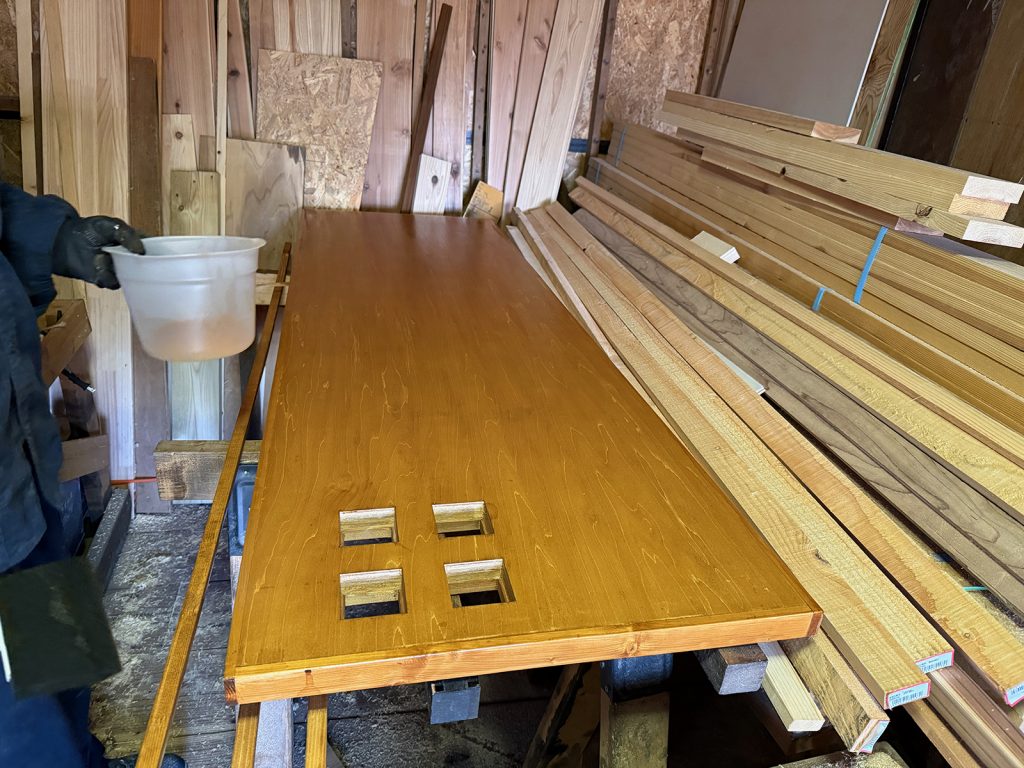katsuは、先月からトイレドアを製作していて、下地塗装してました、。