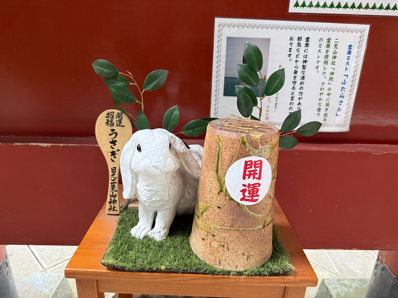 出口にて、またまた開運うさぎ(*^-^*)//_ん?霊泉ミスト?、、気になるじゃん,,,(_ _,,)