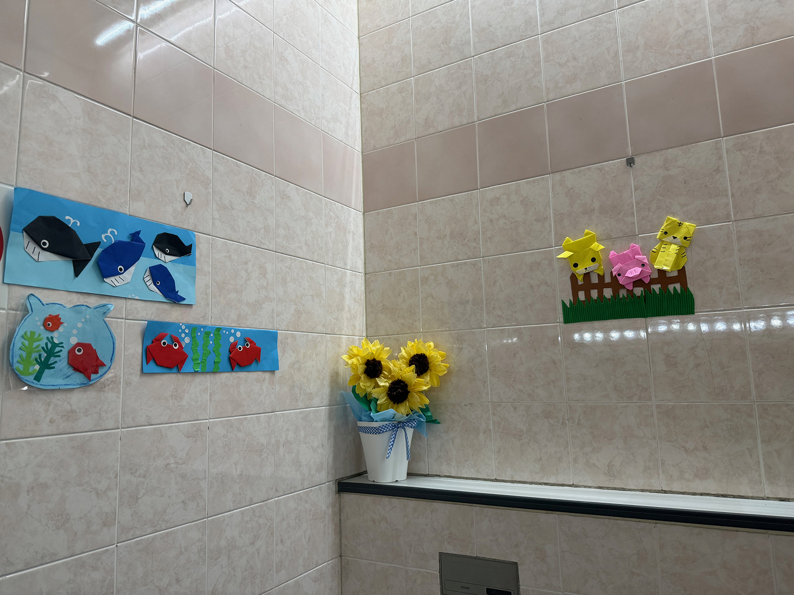 ひまわりは別っぽいけど、クジラにカニ、金魚、右、牛さん、豚さん、ネコちゃんだよ!!Good!!