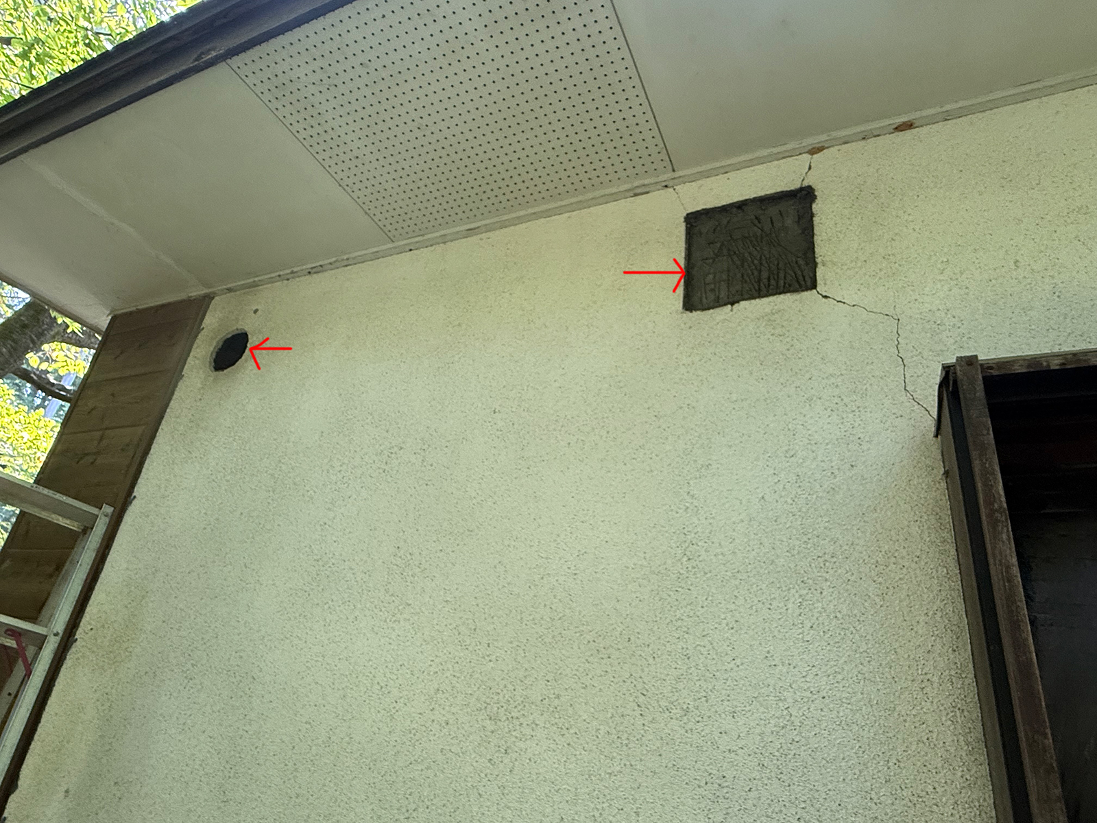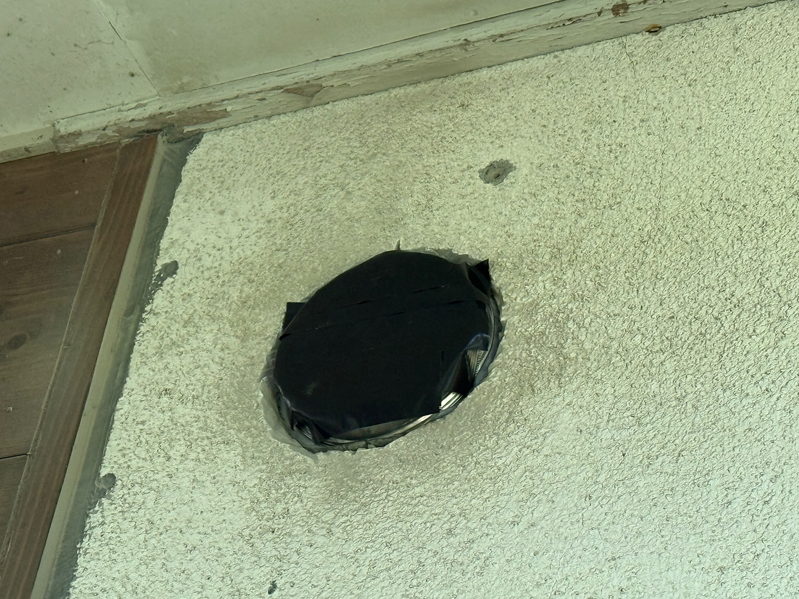 昨日、塗装後、右の旧換気扇の穴を埋めて、