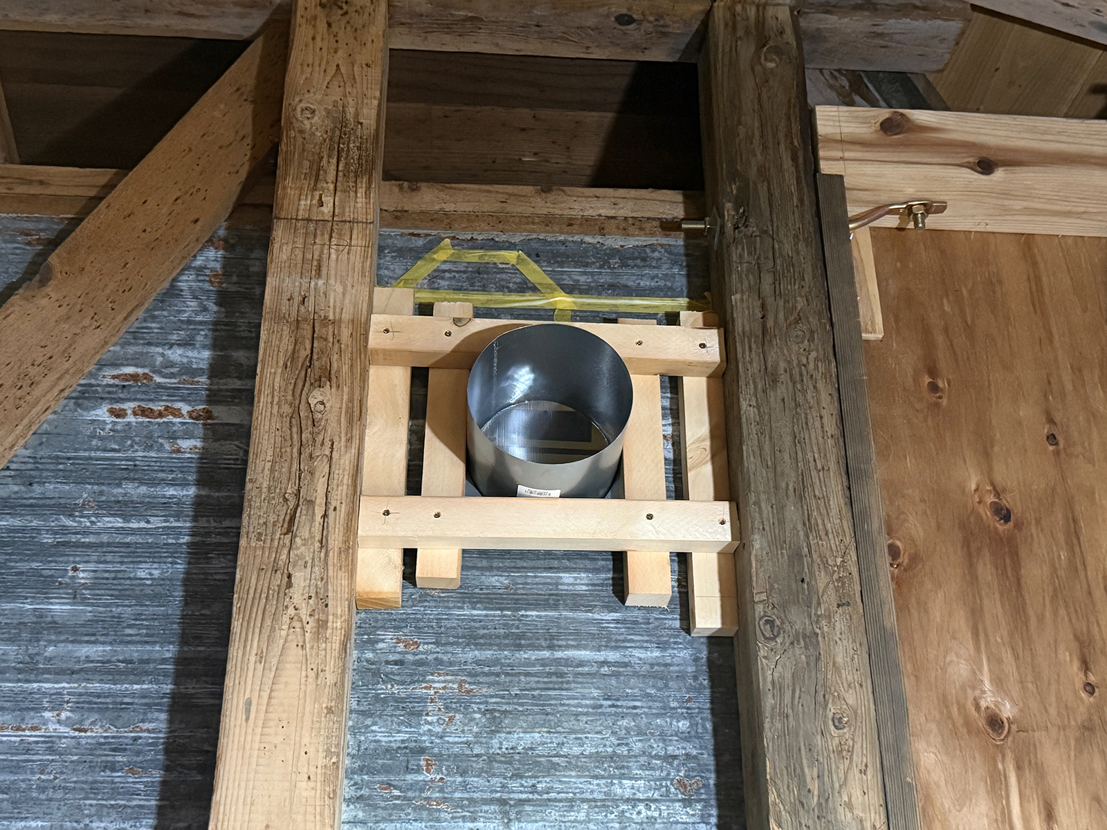 朝一で、暑いけど、ヤッケ姿で左の新換気扇の穴あけ(; ̄ー ̄川