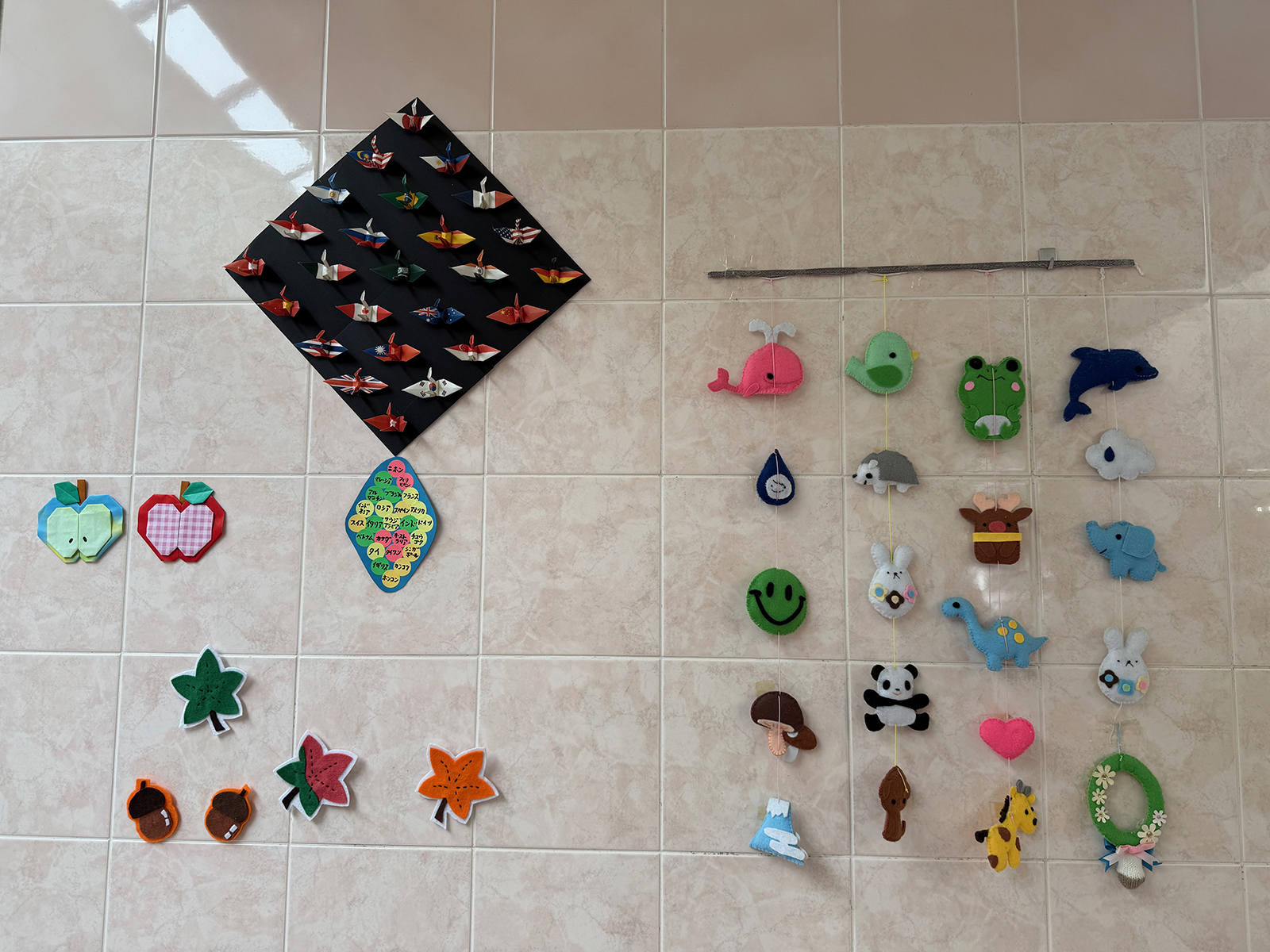 右側の吊るし雛のようなものは、フェルトでの作品(*^ ^*)❣️「これ、下さ〜い!」<ホント欲しい..>