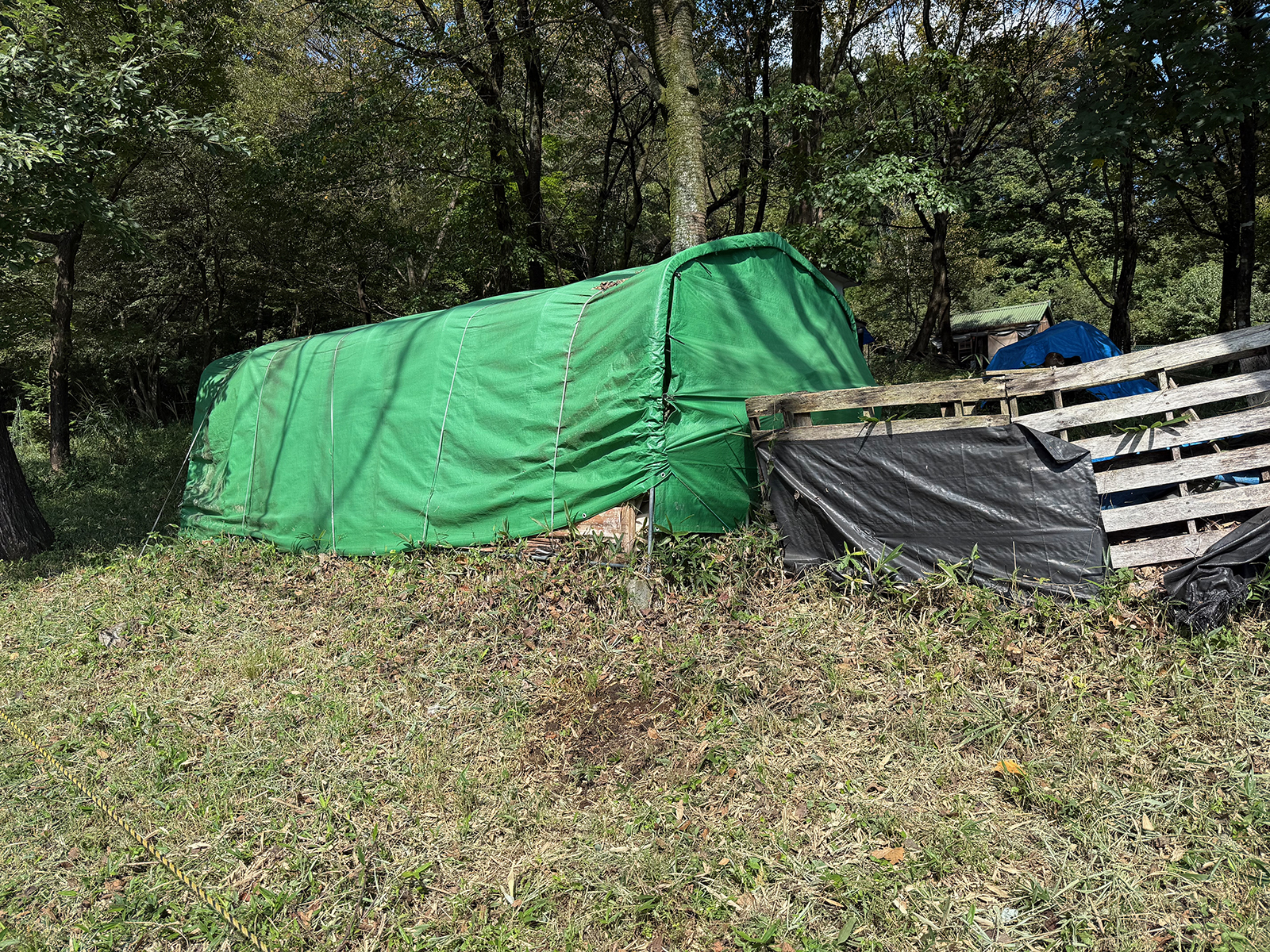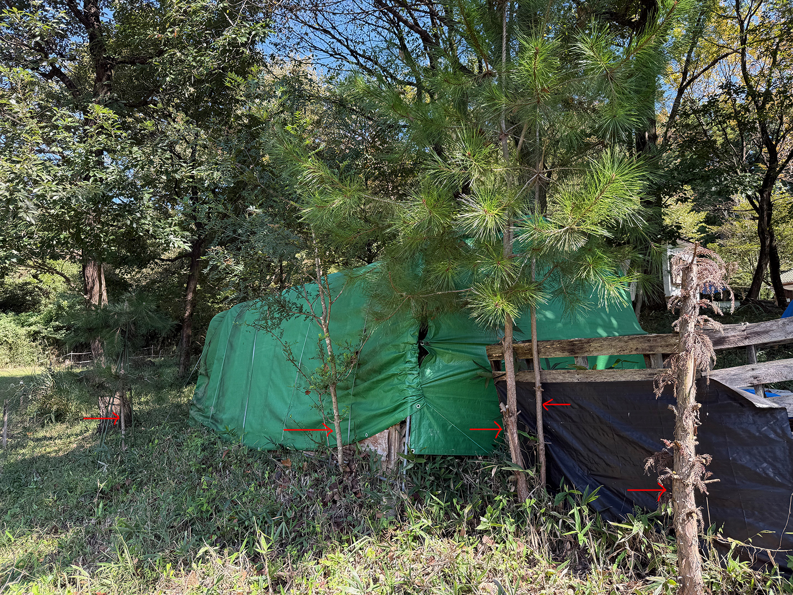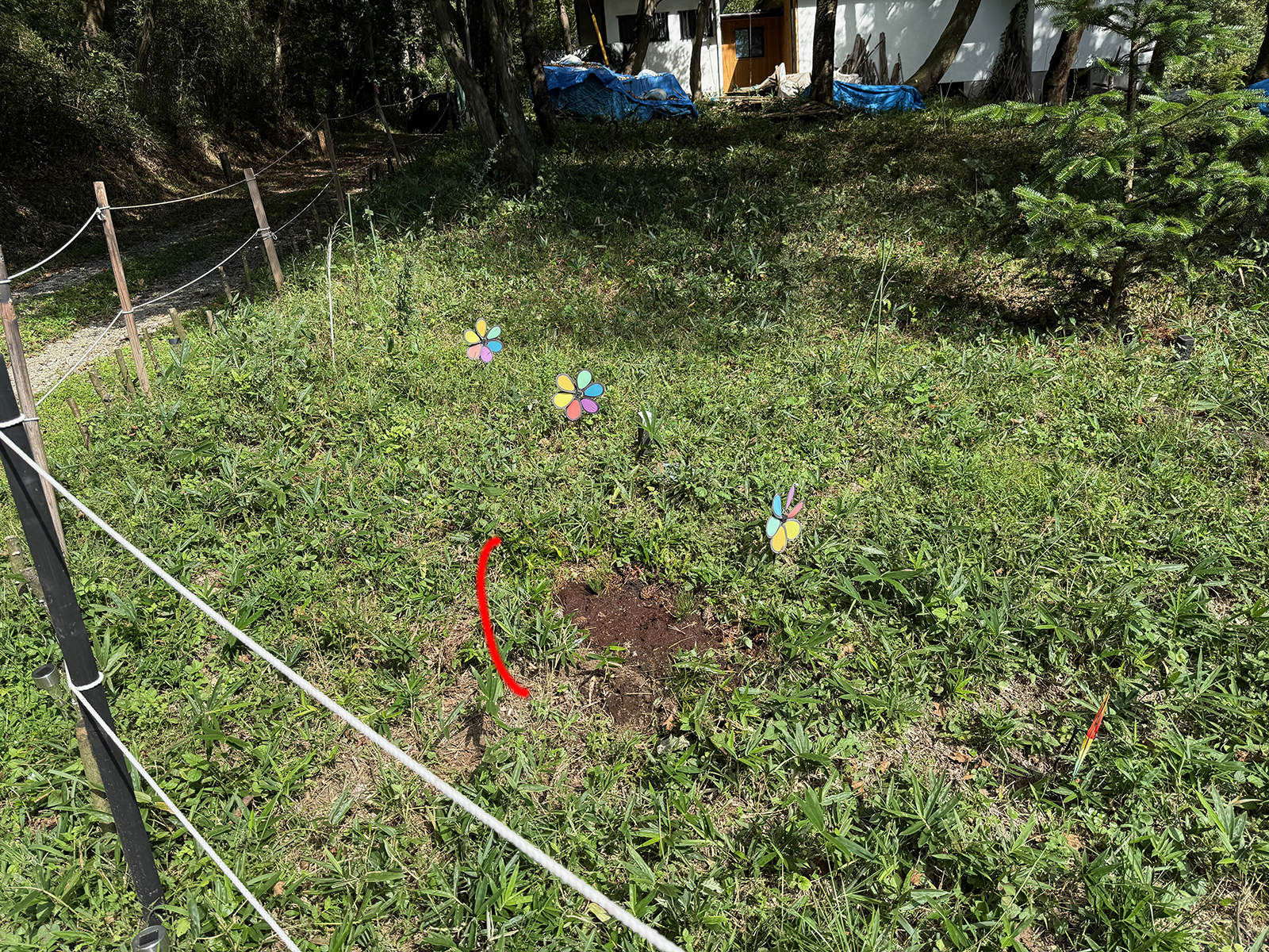 杭が倒れてるわ、鹿よけの囲ってた支柱も折れて、倒れてるわで、あちこち、貼り直してて