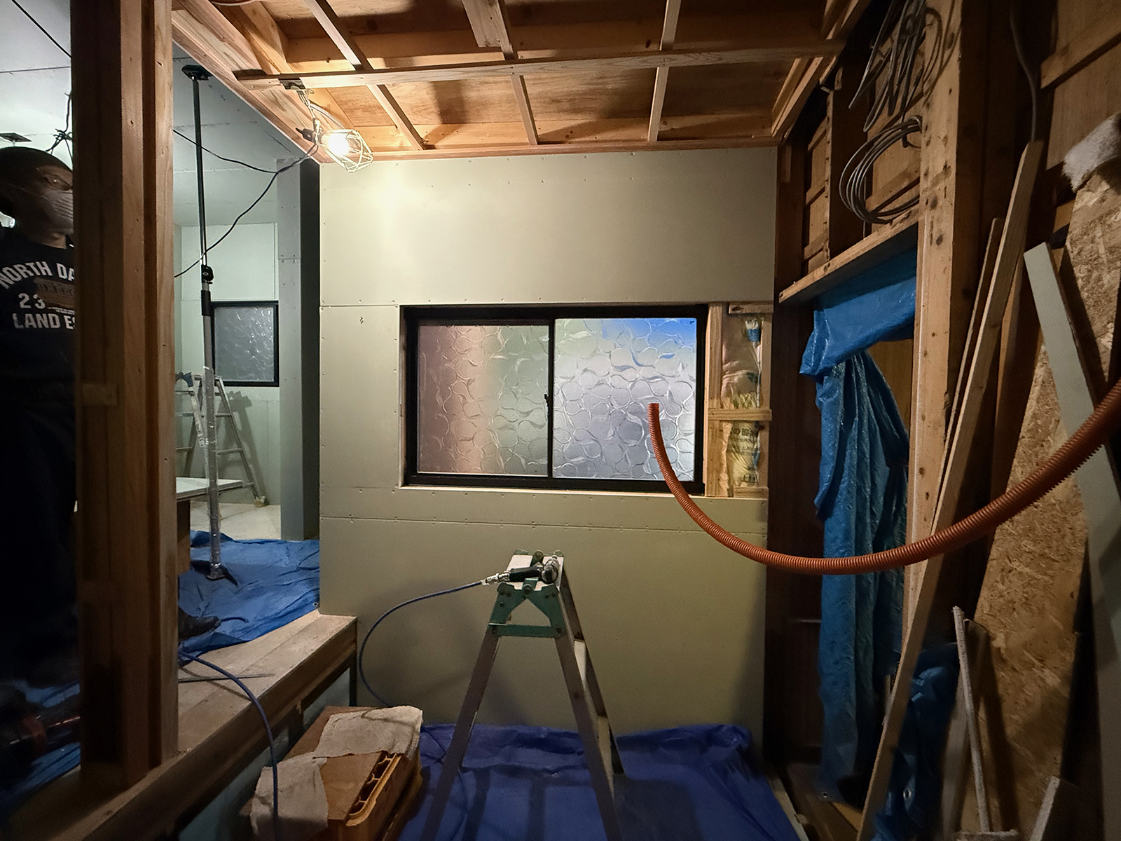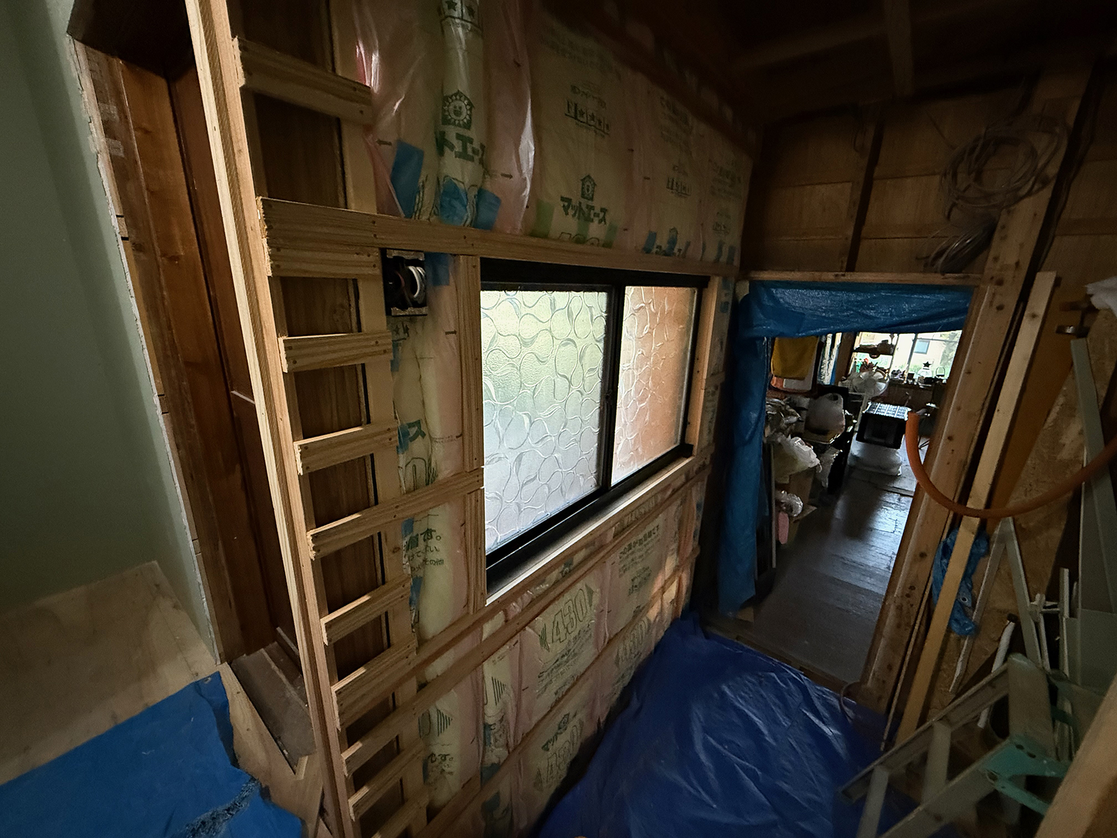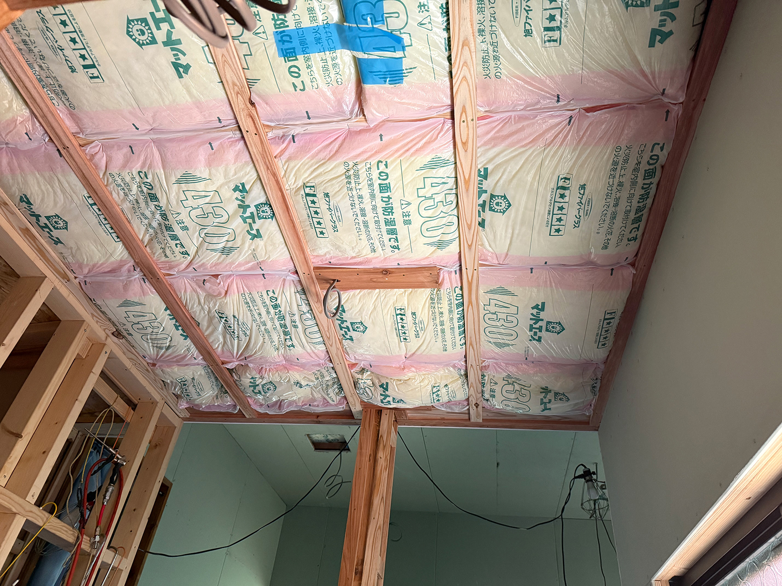 通路の天井に断熱材を入れて、次回はボード貼りかね(^-^*)/