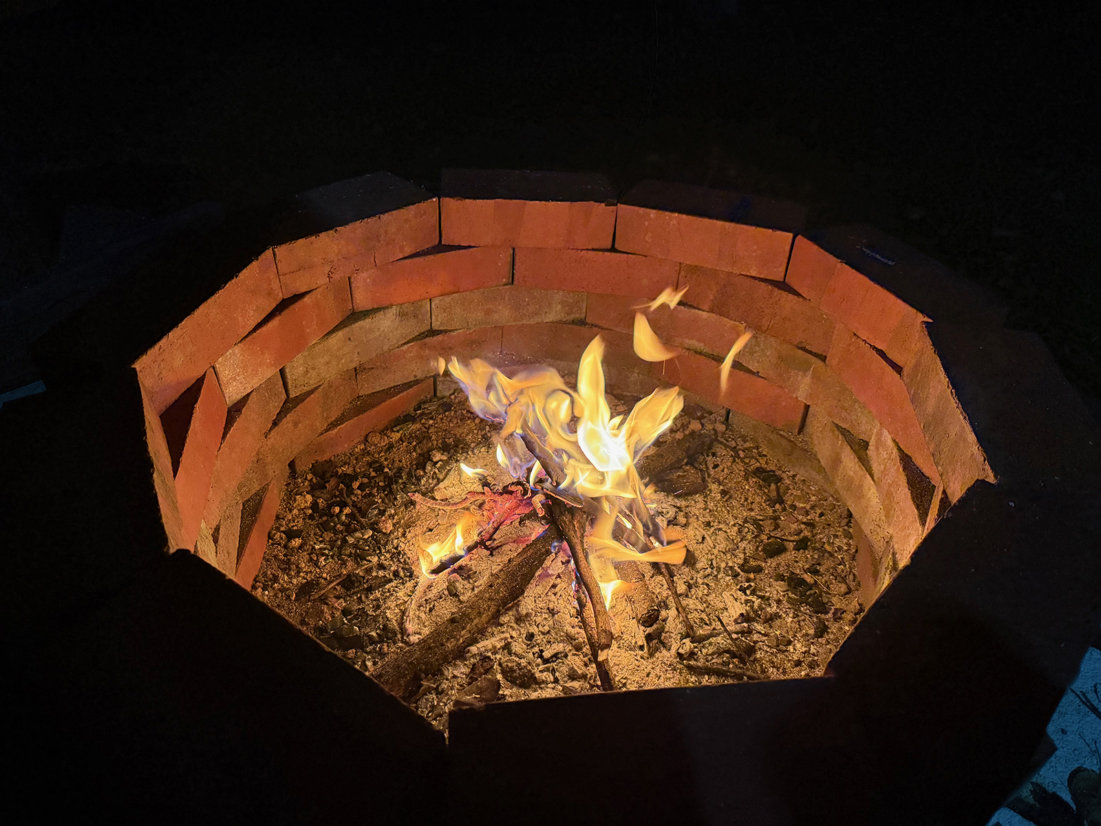 外でまったり、夜風も心地よい焚火。。。