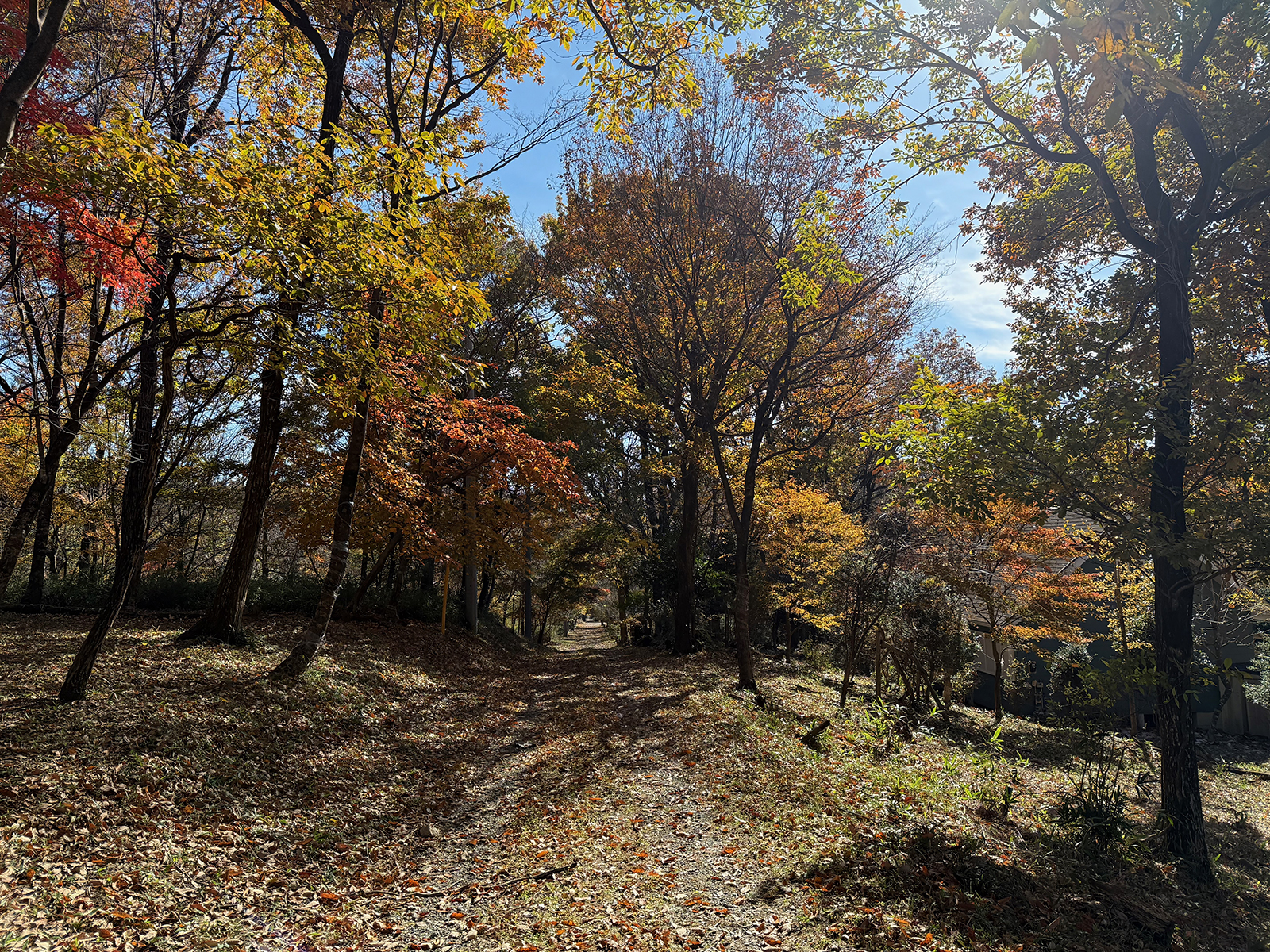 真ん中の道の紅葉もずっと下まで、色づいてました。。