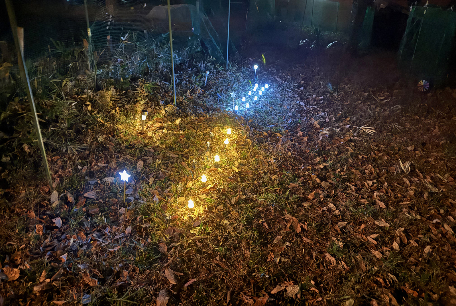 陽が沈みかけてから、新調したイルミネーション点灯(ゝω・)