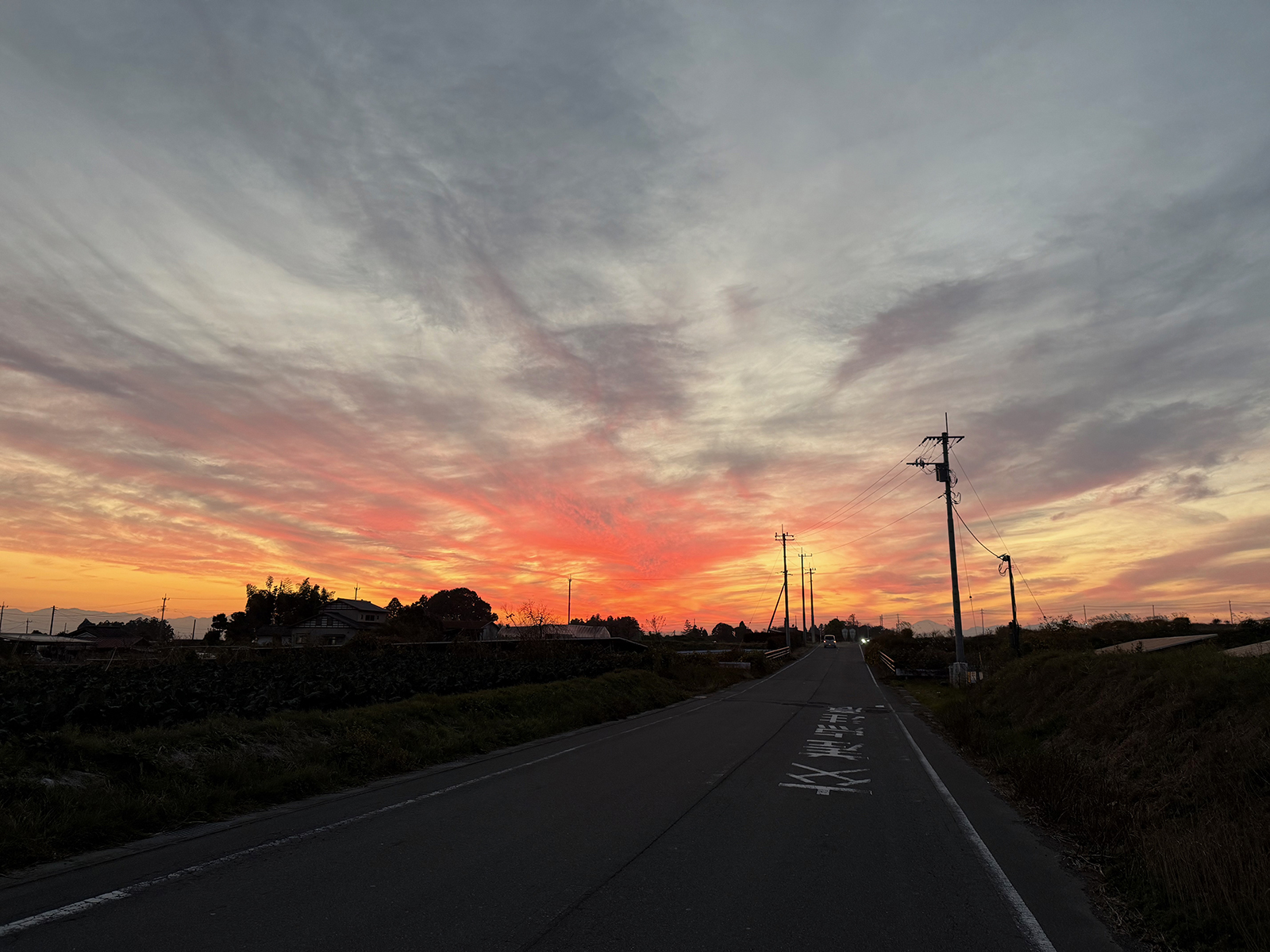 夕暮れ時、買い出しへ_| ̄|○。。<Nagabutiのあの曲が流れそうな真っ赤な夕日>