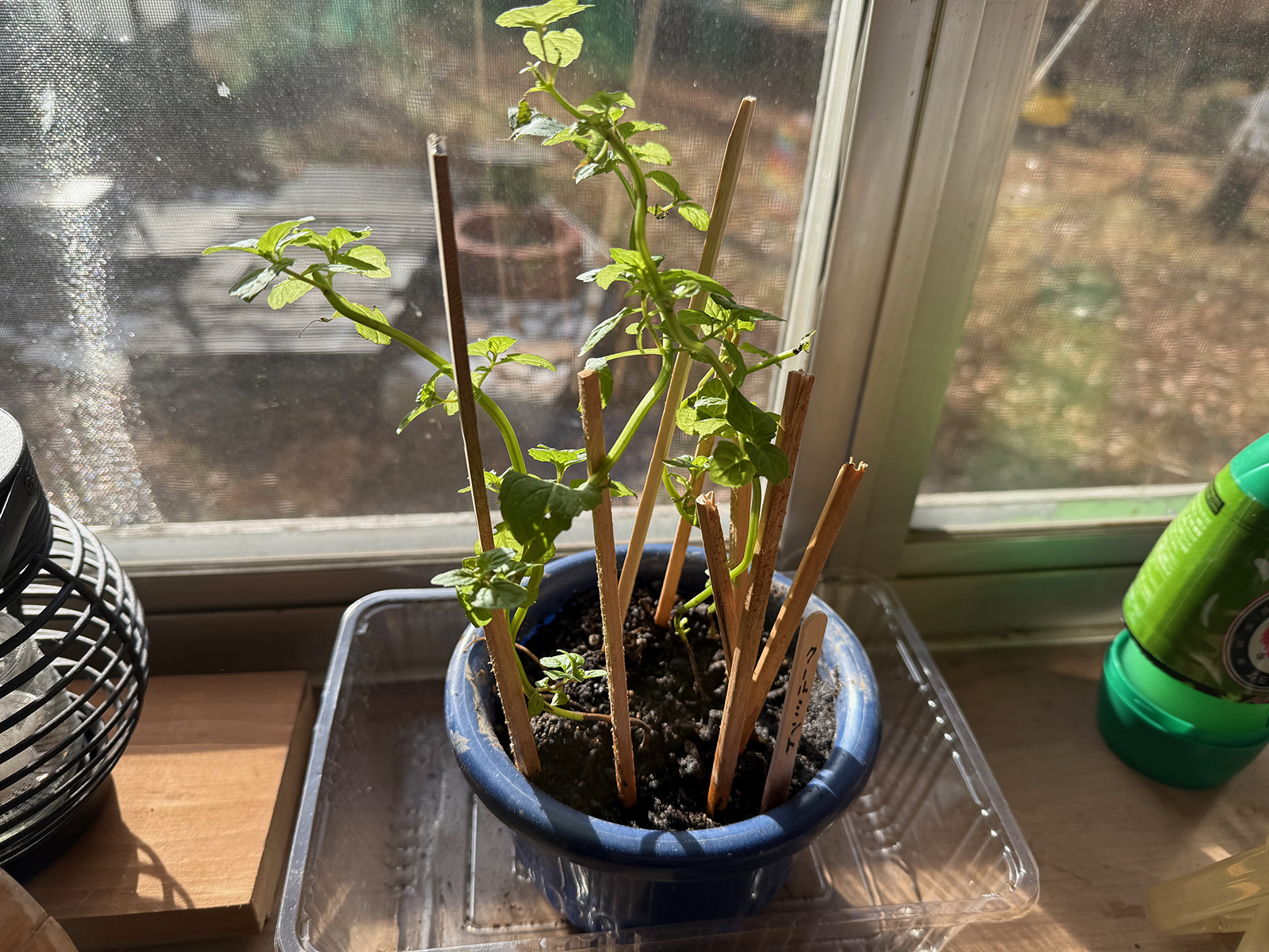 仕上げをやってるkatsu、片付けながら、、、カメムシ避けに置いてみたクールミント