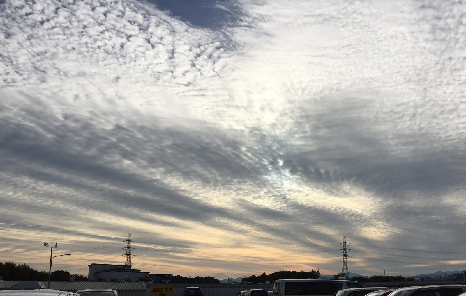 なんだろーっ?このうろこ雲と夕日の合体現象(・・?)