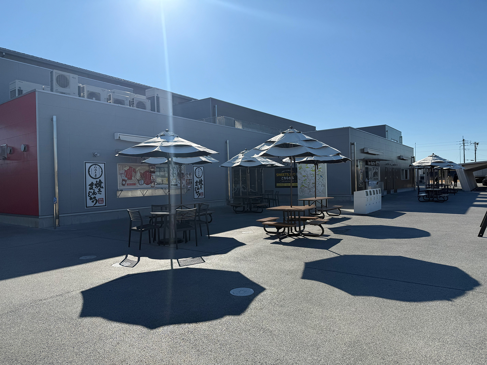 ここはカフェ・フードコート・バーガーショップ・レストラン館、この右先には、鮮魚館、