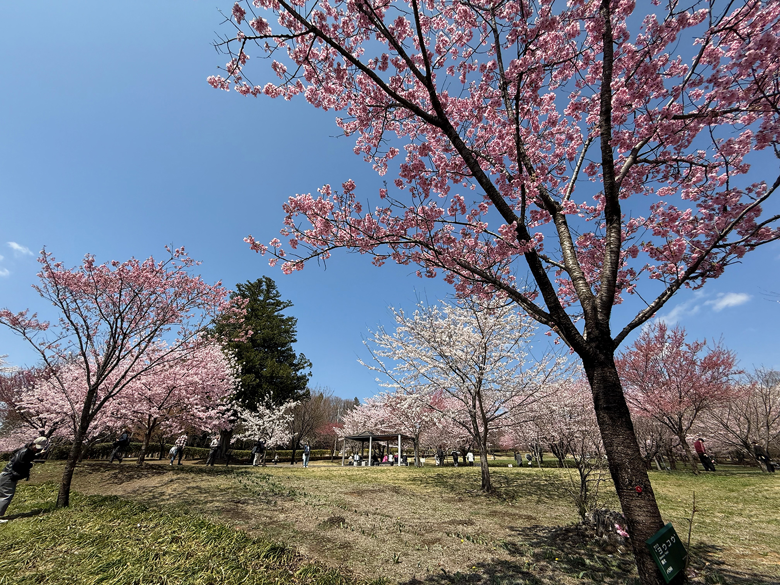 多分、これは年数を重ねたソメイヨシノなんだろーけど、やはり土地的寒いから?木が細いね..