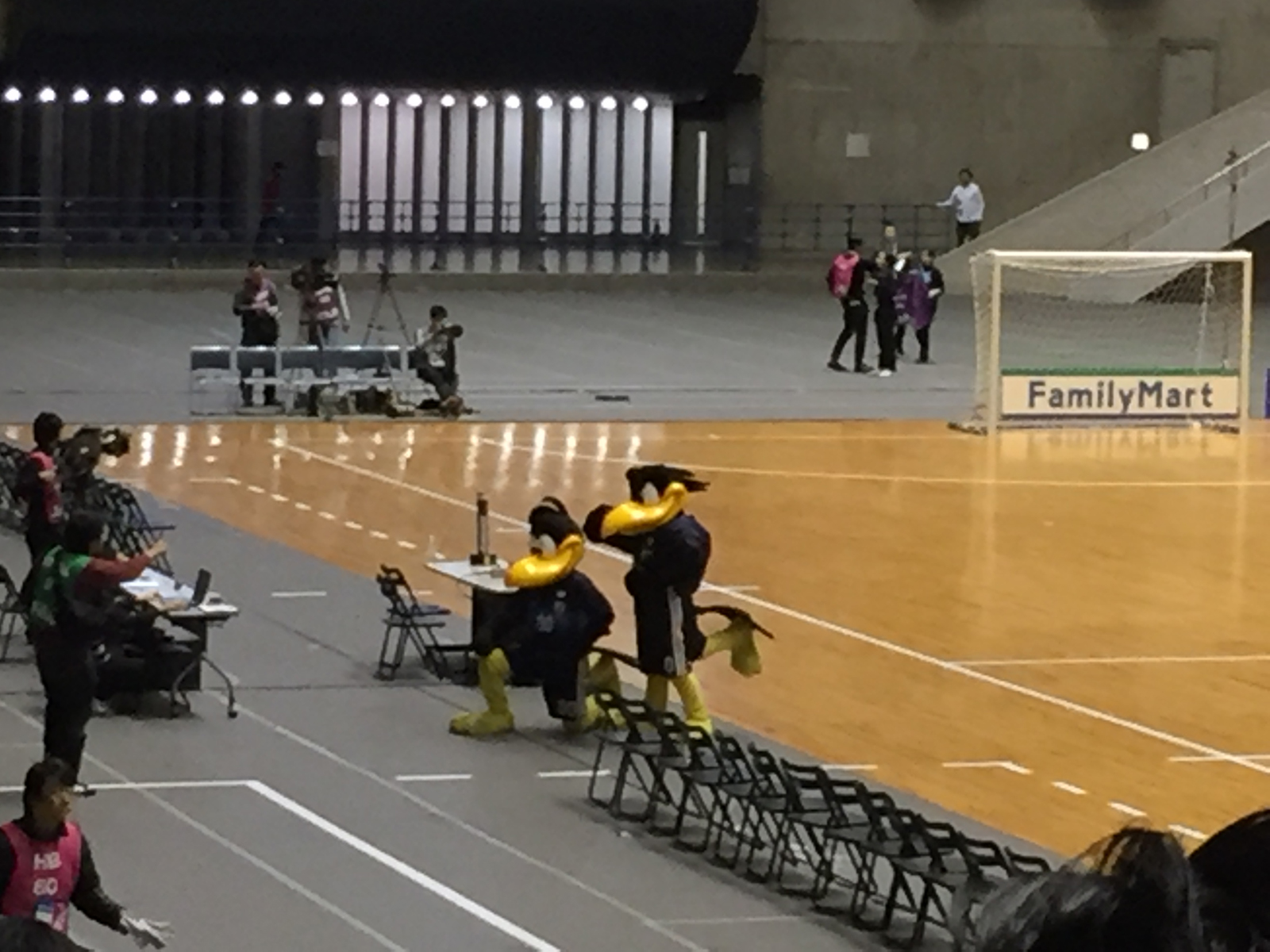 ハーフタイムには、公式キャラクターのヤタガラス君たちが登場で