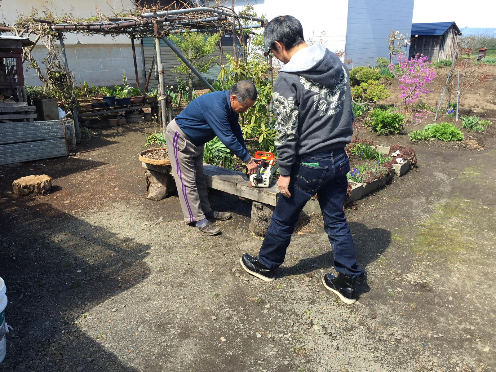 でね、使い用があって、おじちゃんから、チェンソーをもらえることになり、