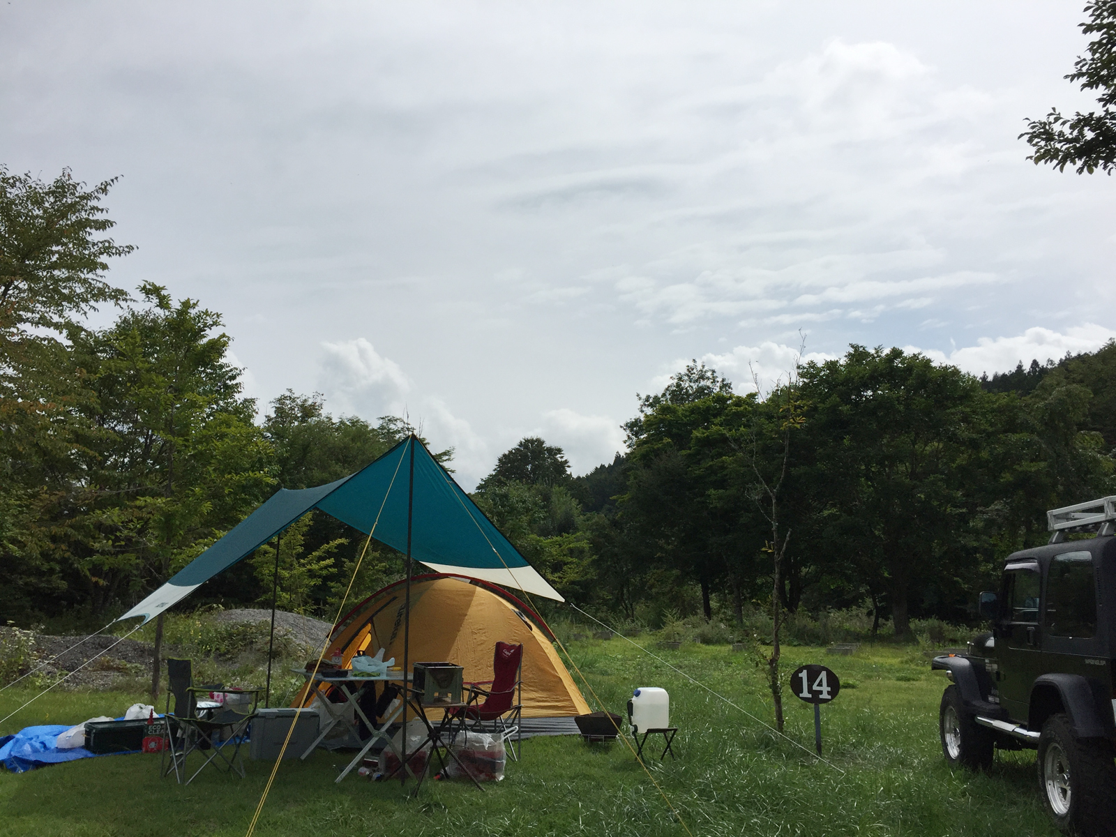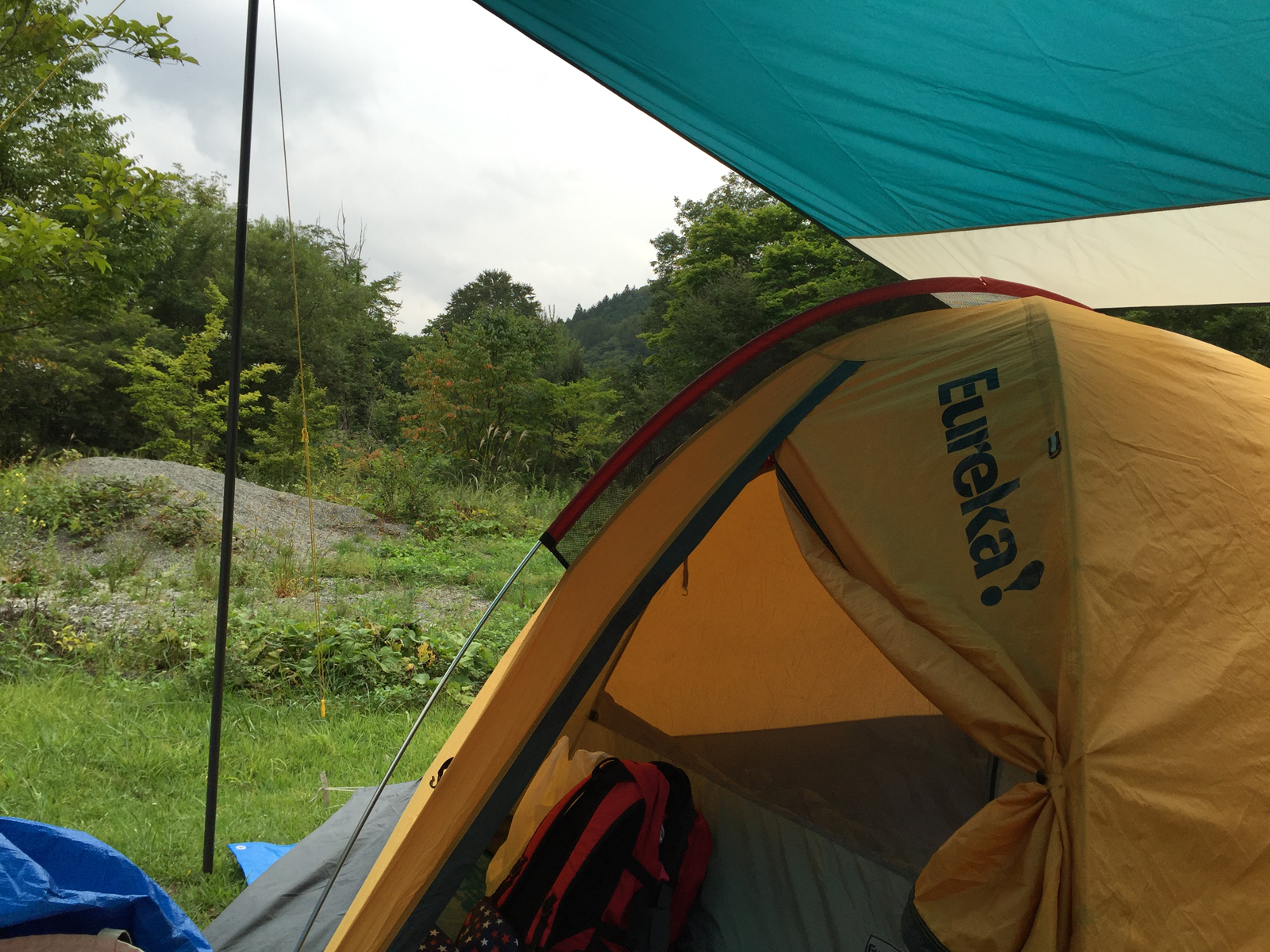 当たり前のようなこの設置、ターフ内にテント入り口設置で、