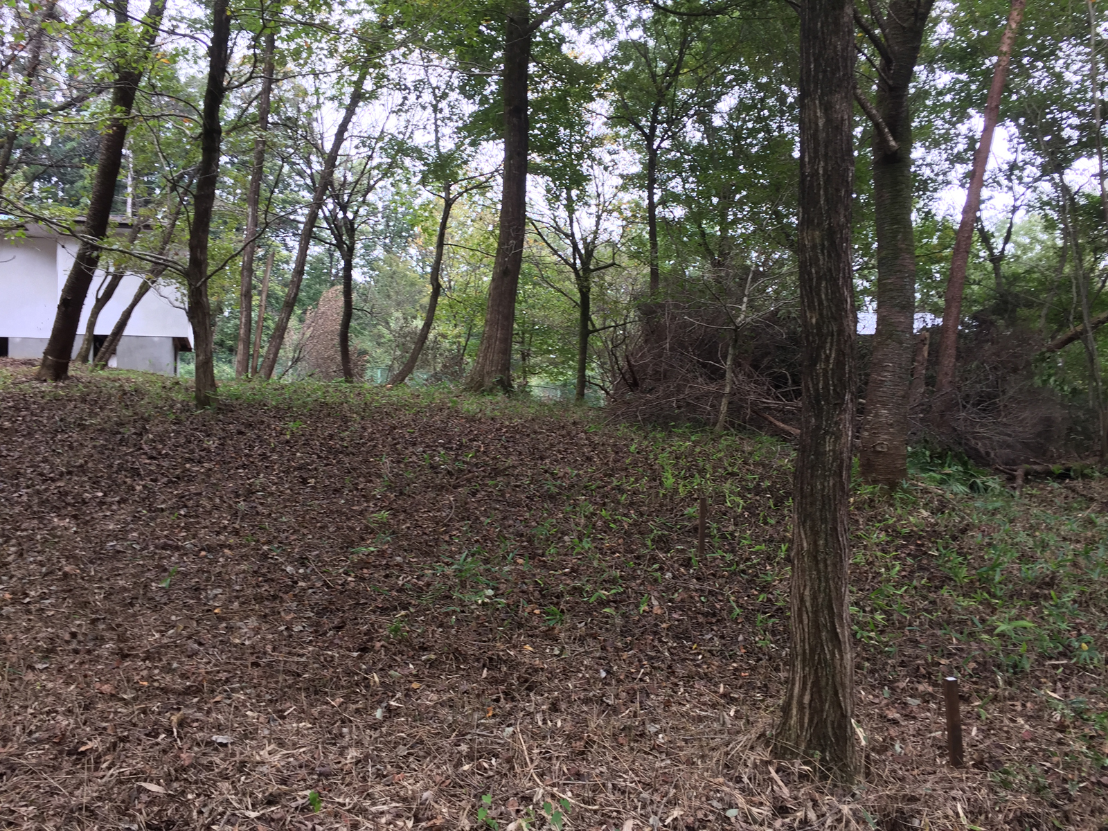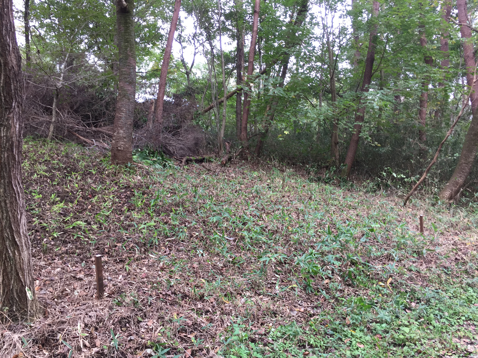 片した奥を、この杭の間を、廃材置き場に。
