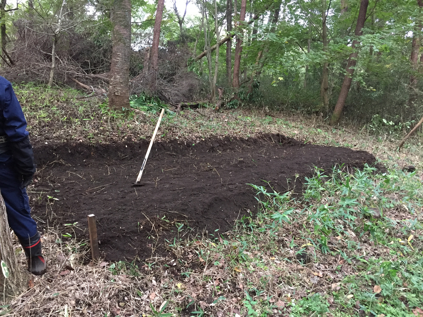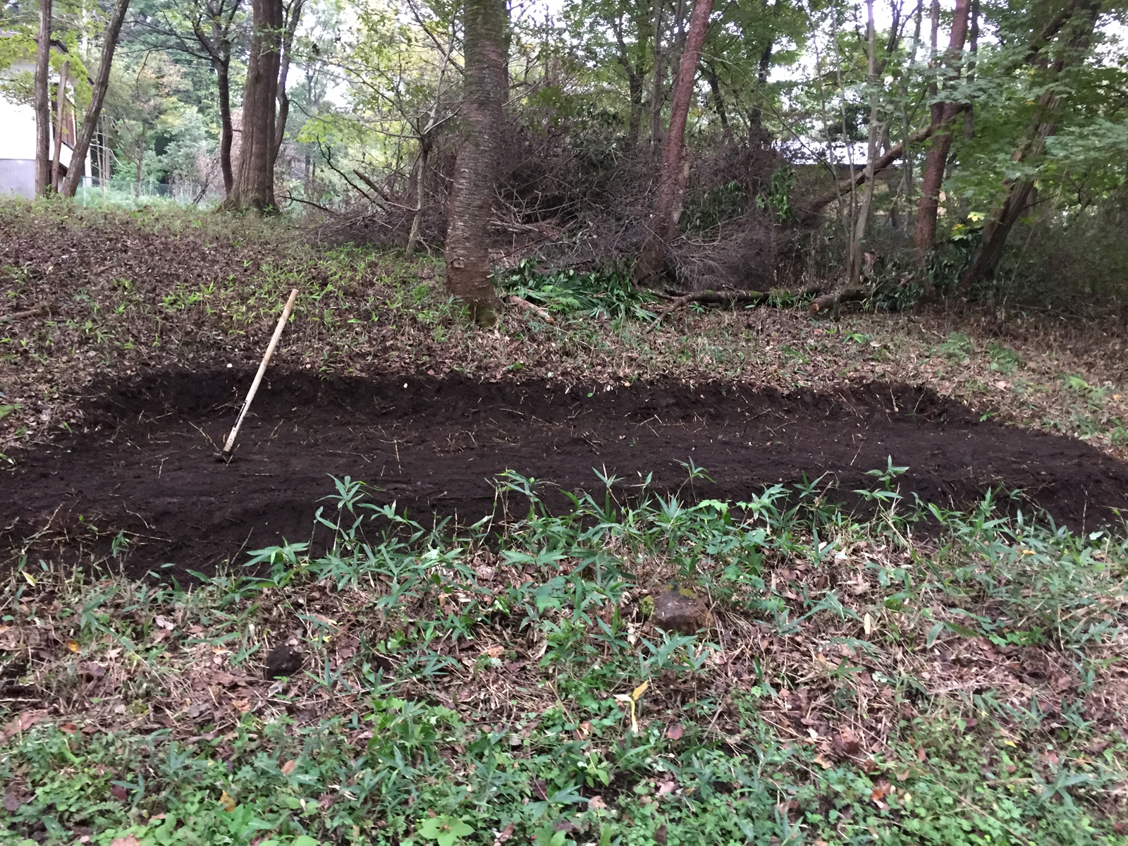耕やして、改めて、熊笹の根っこが多っ┌┤´д`├┐