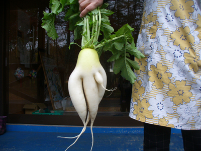ドロブの梅ちゃん畑からの珍大根(・o・;)