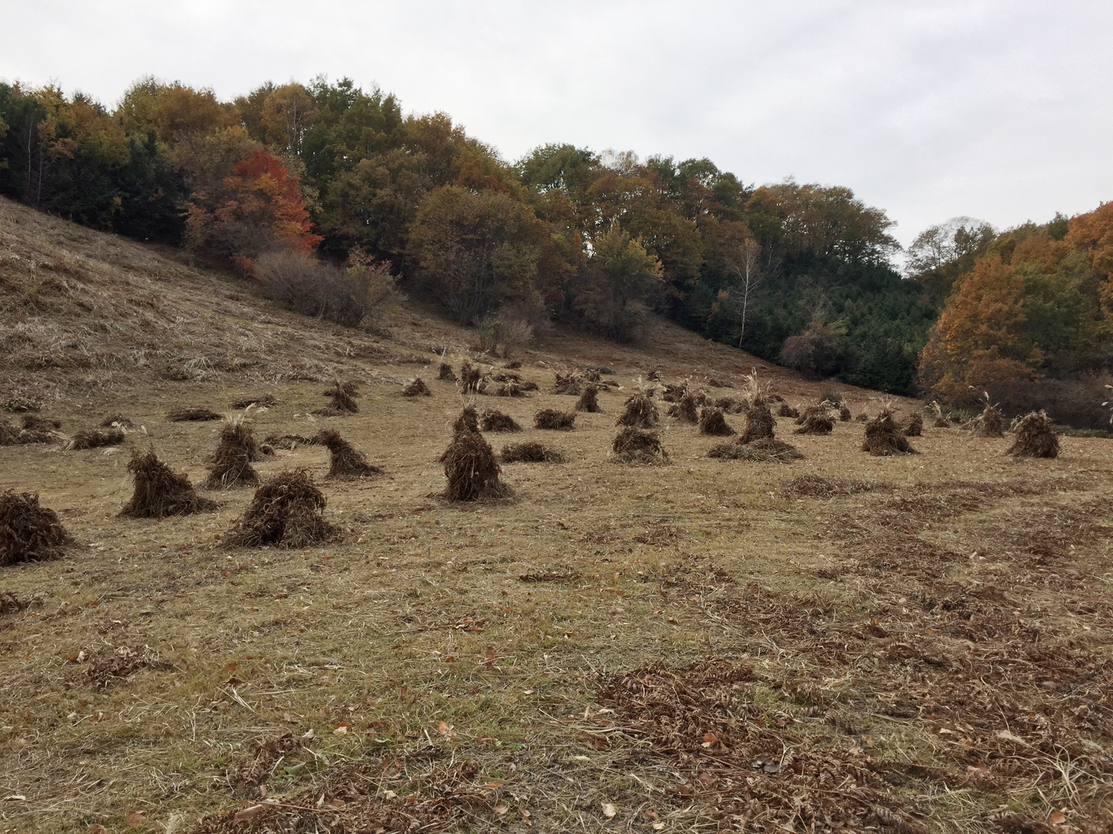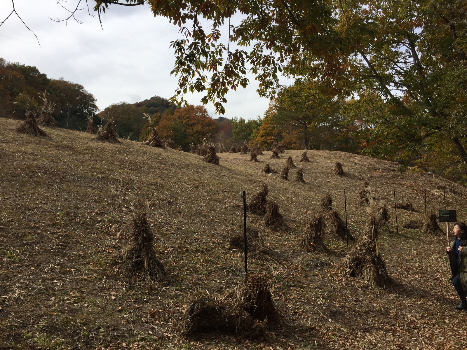 萱ボッチの小山へ。子ボッチがポコポコしてて、
