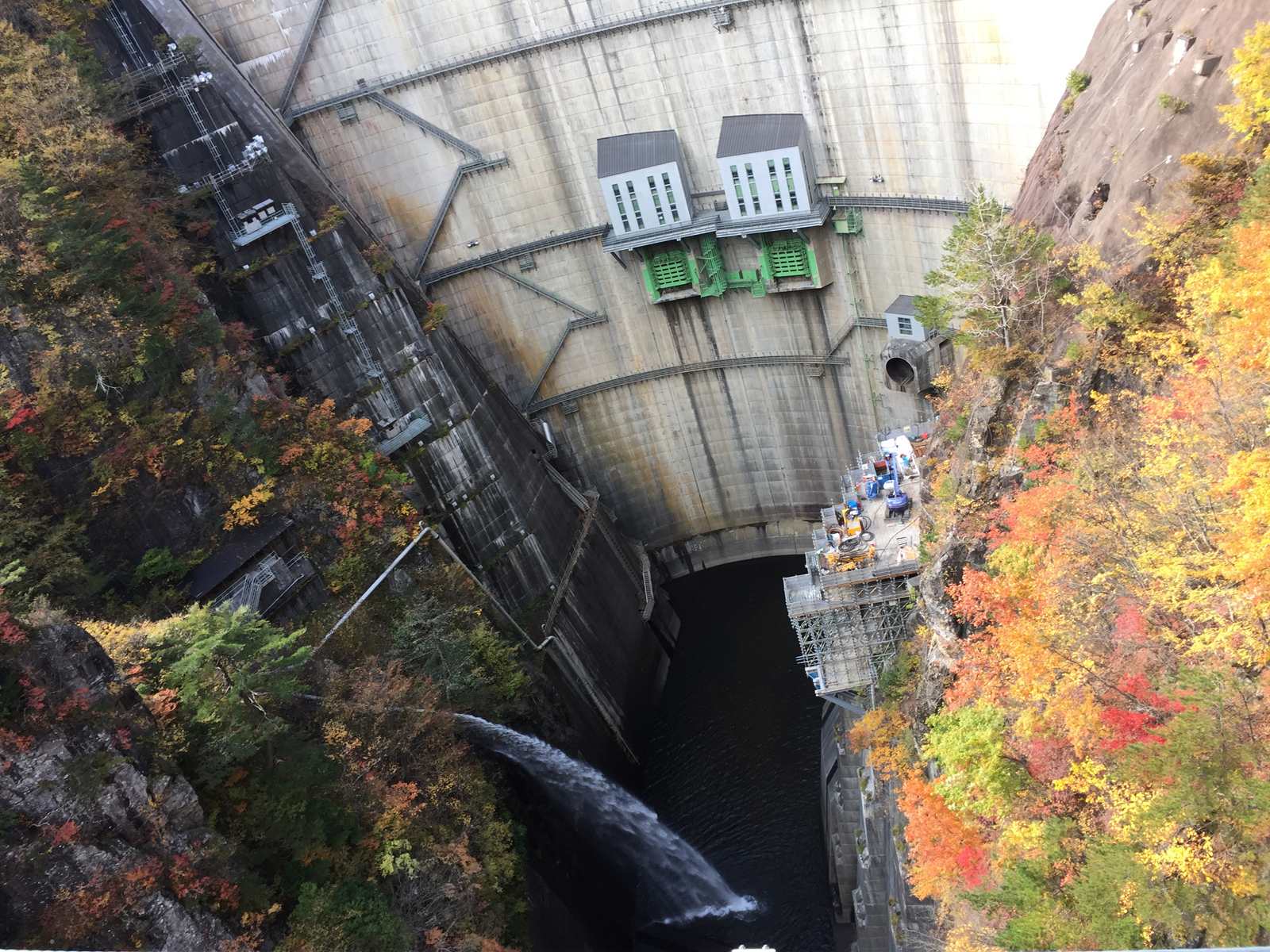 ダム堤防の真上から、あまりの高さに、ビビるぅ〜(^▽^;)