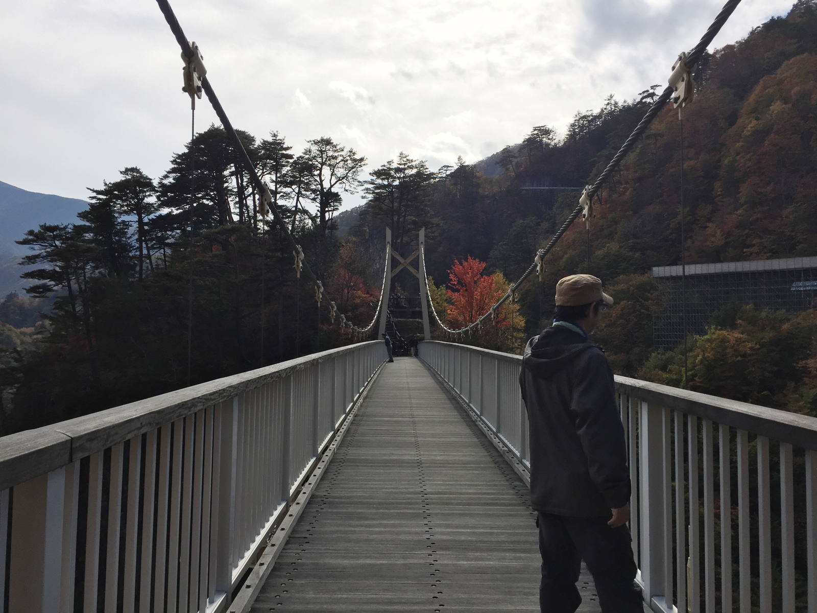 揺れる橋で、下の覗くには、勇気なく、katsu撮りで、、コワぁ〜ッ