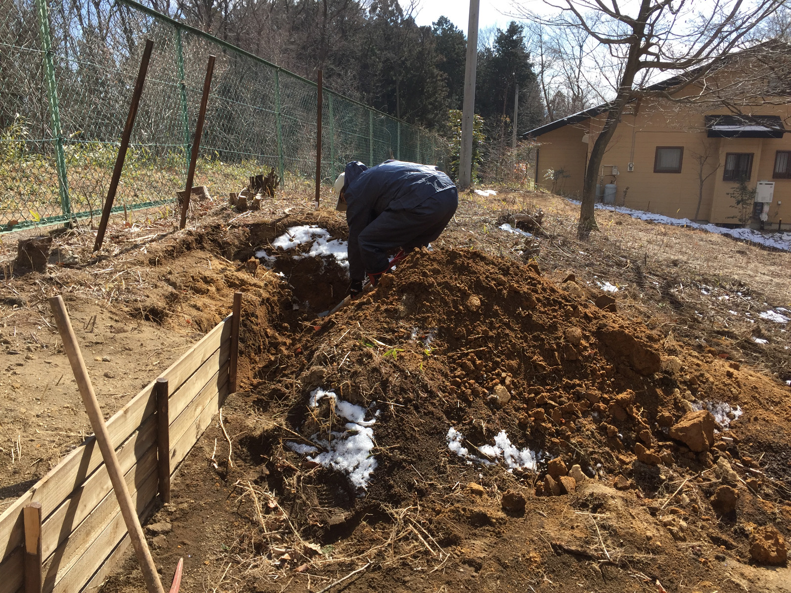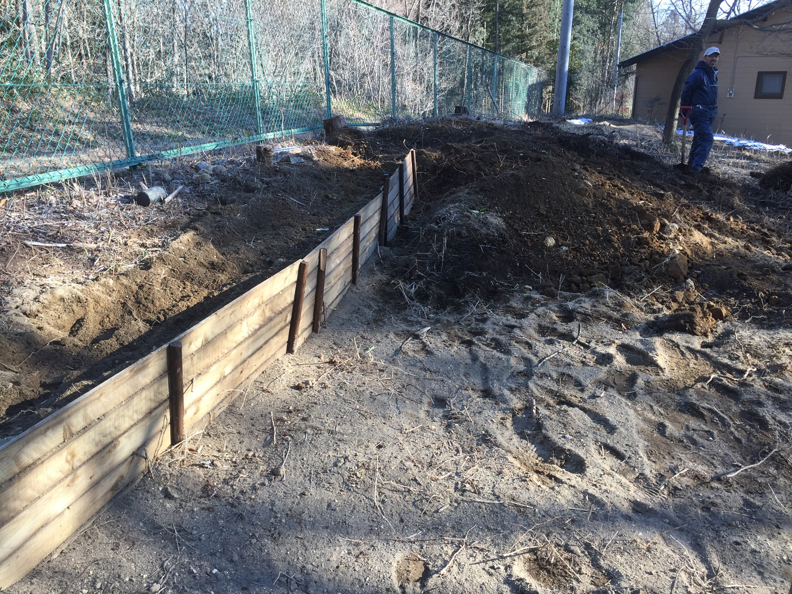 前回の続きで、土留めの木を追加購入で、進める。。。が__