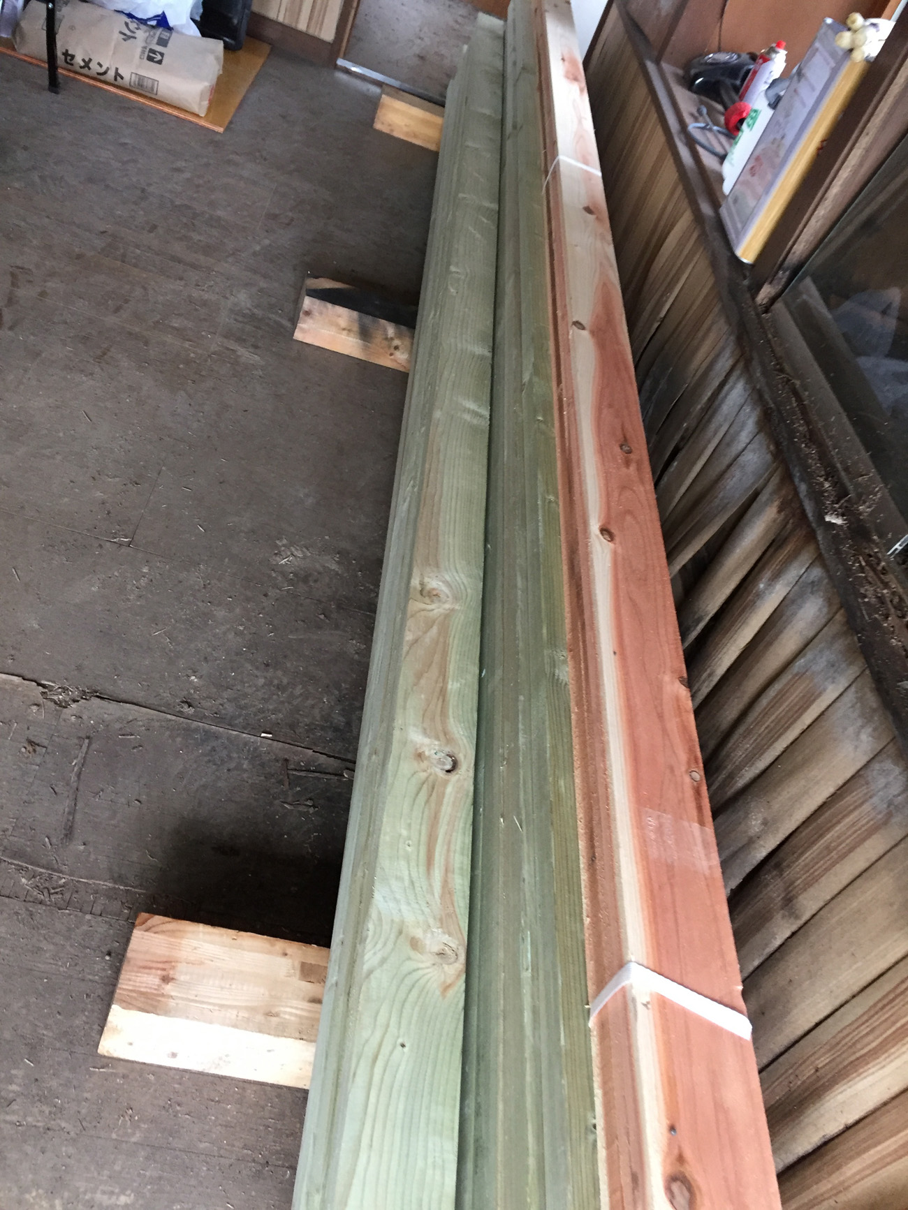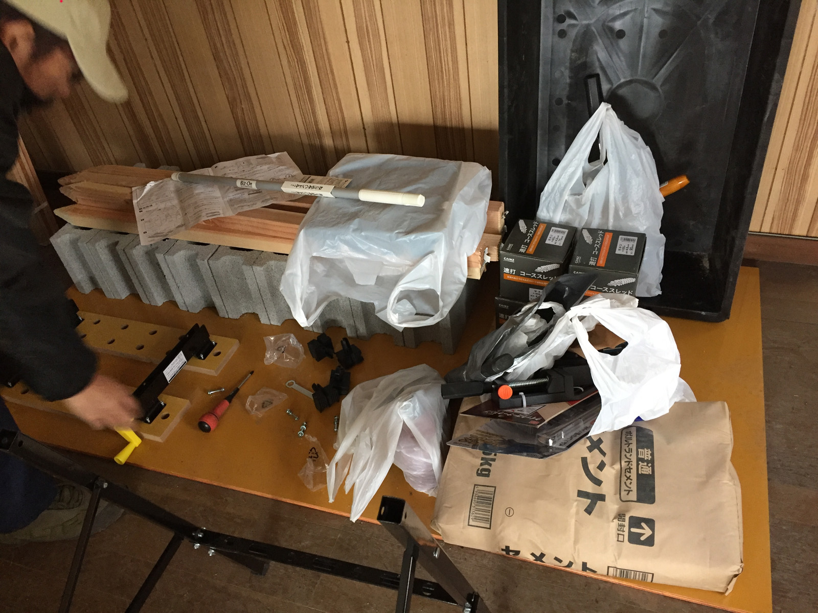 朝一から、ホームセンターに立ち寄り、資材を購入し、貸し出しトラックで運搬