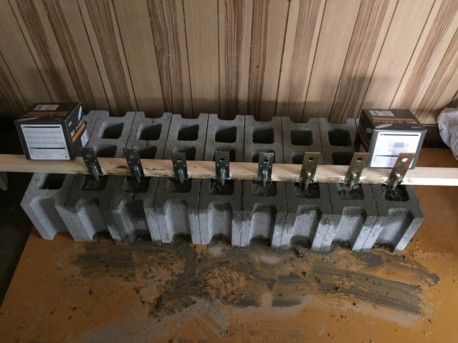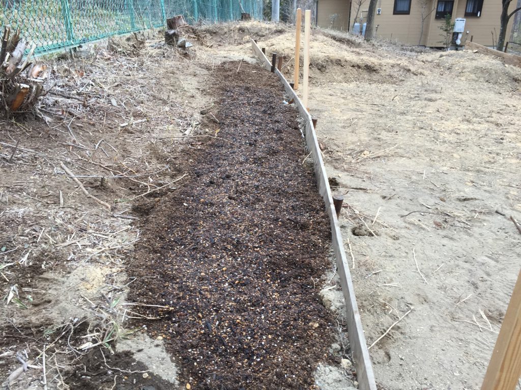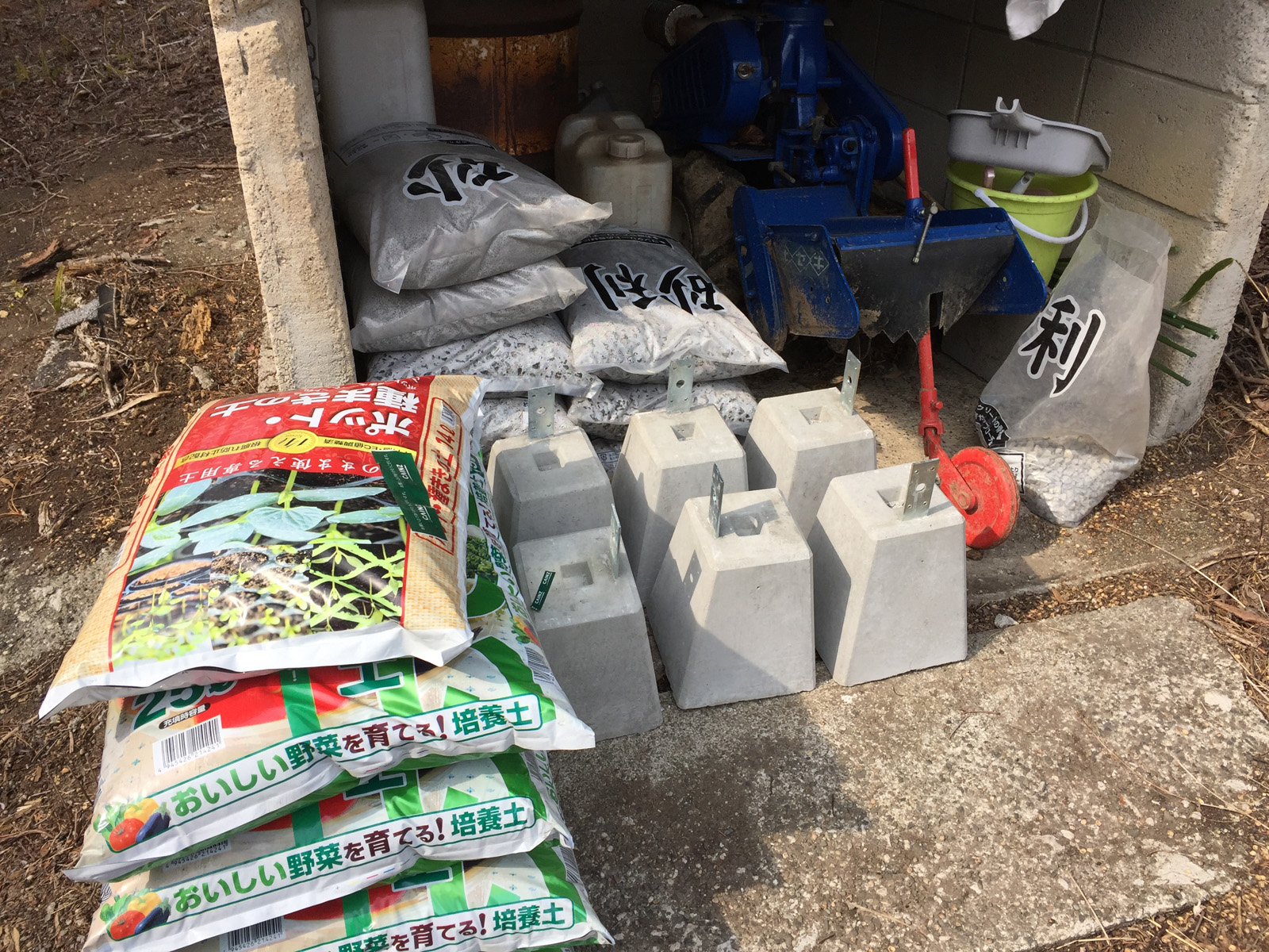 土台の基礎ブロックと砂利を、、<ん___足りないよね,,,>