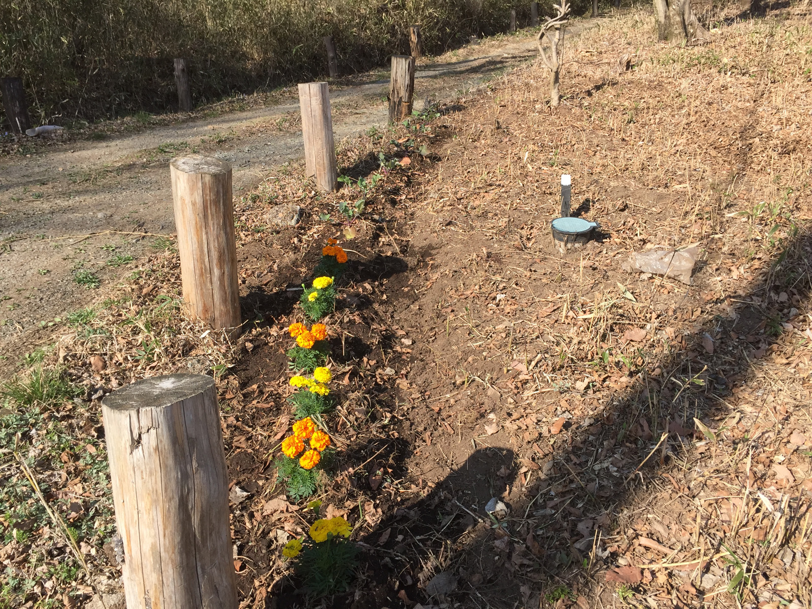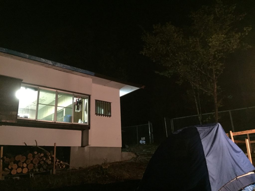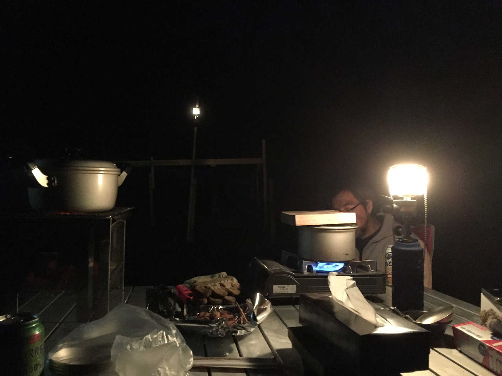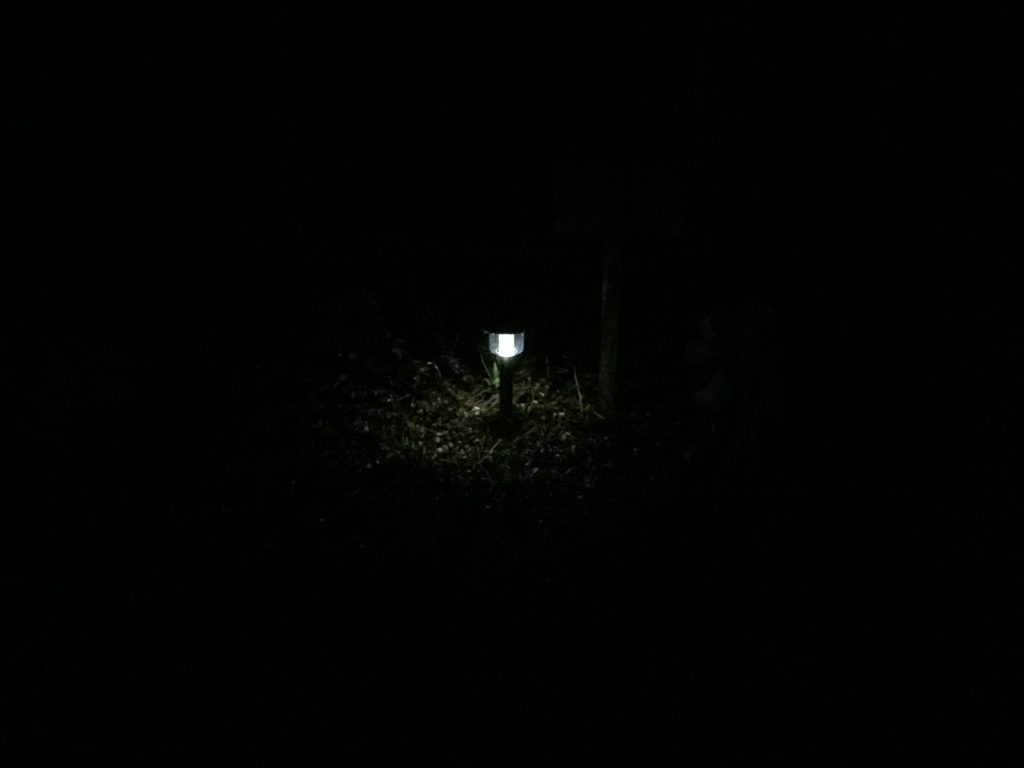 現場へ戻ると真っ暗な中に、下のソーラーライトがちっちゃーく