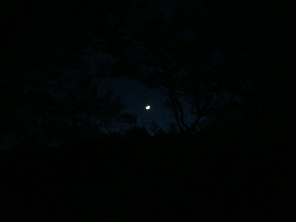 日付も変わりの深夜、、、月も星も、くっきり<街灯ないから照明がまぶしっ>