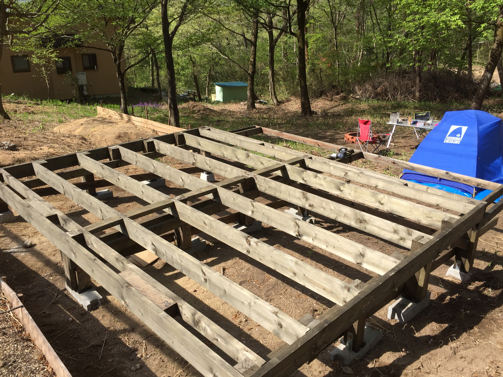 この後半である程度の形(屋根と壁の部分に防水シートを貼る)まで