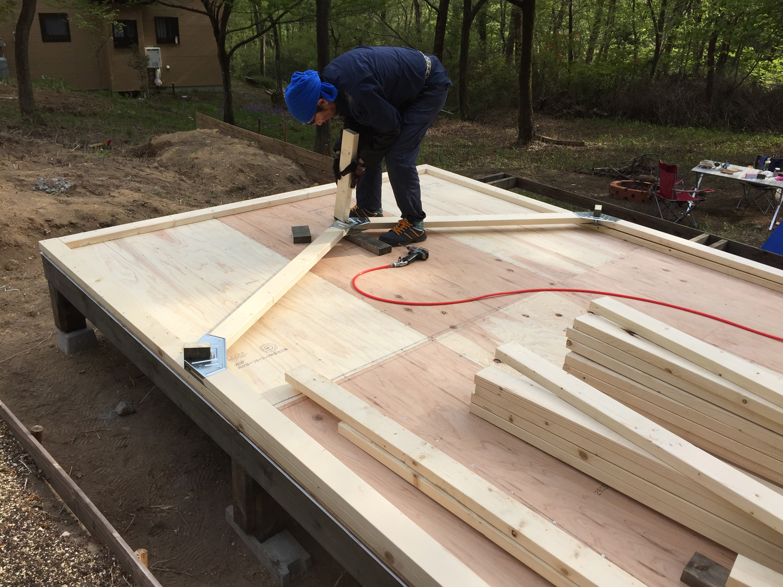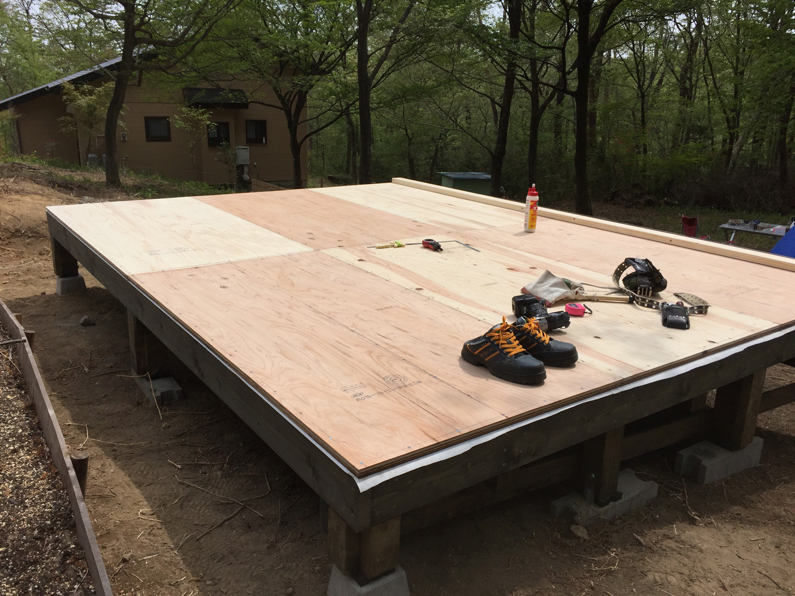 その上に合板を敷き詰めて、