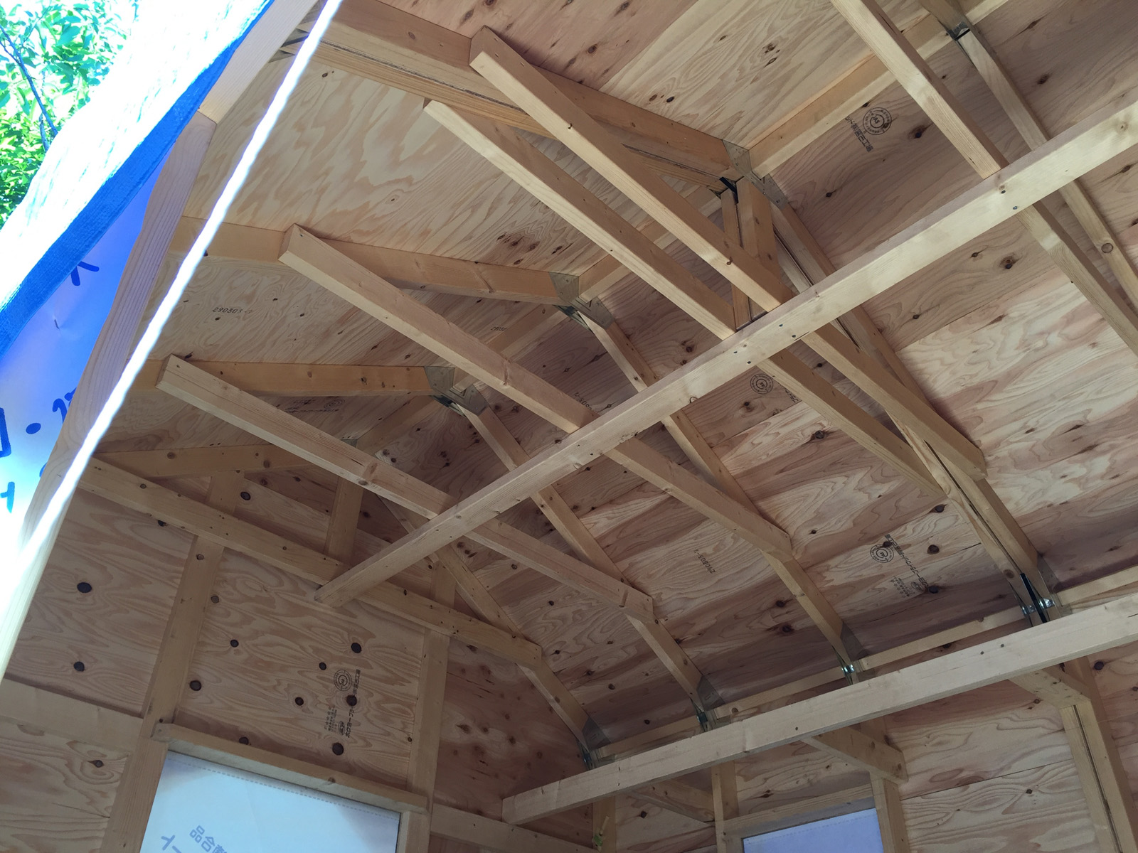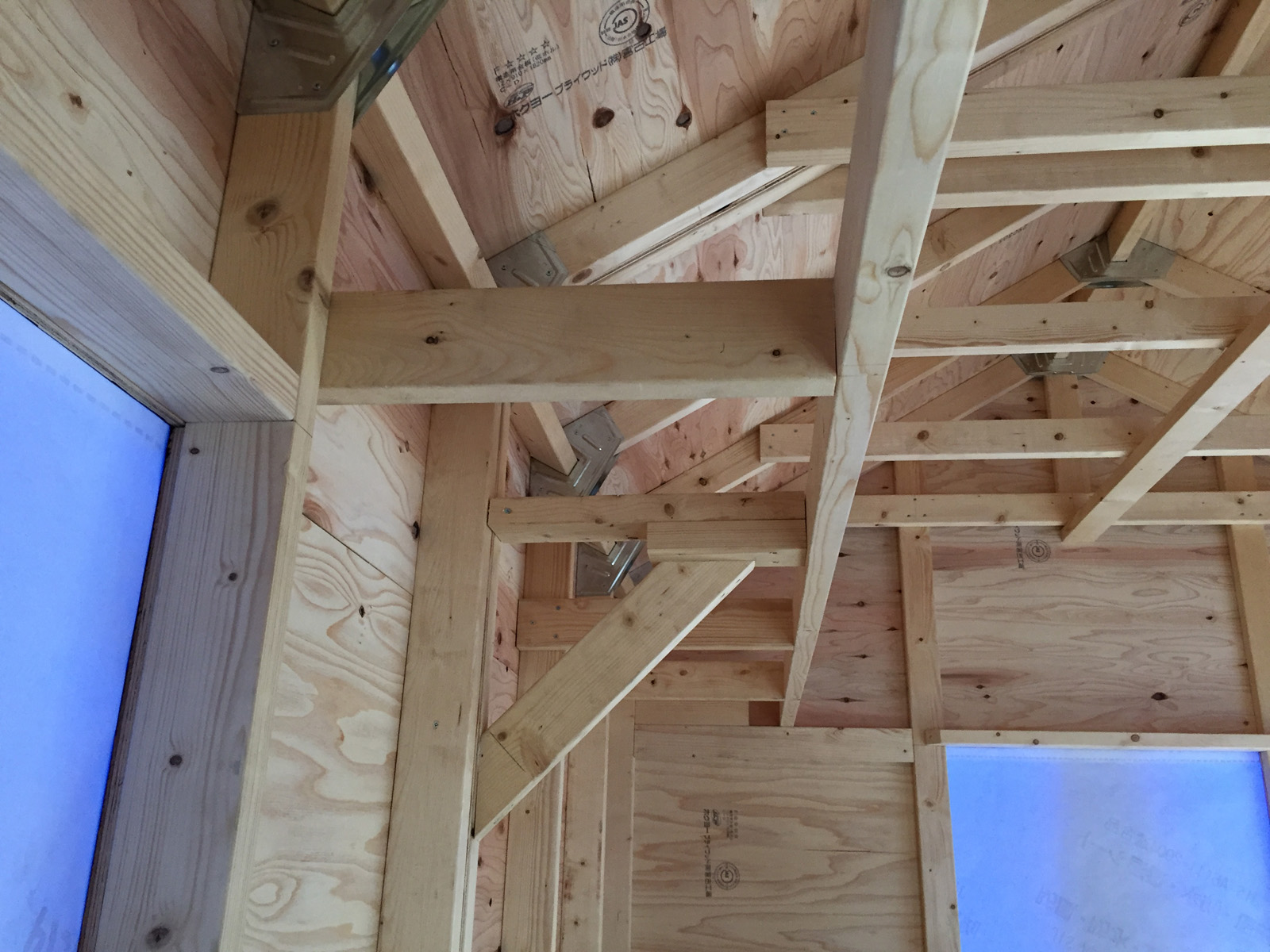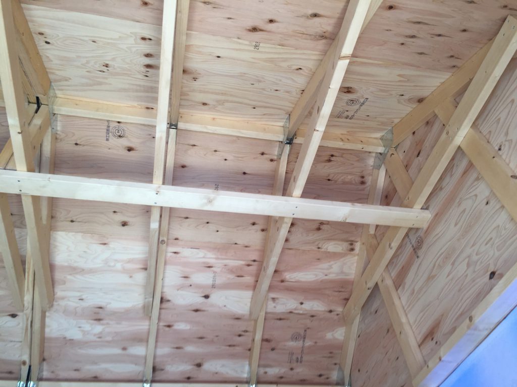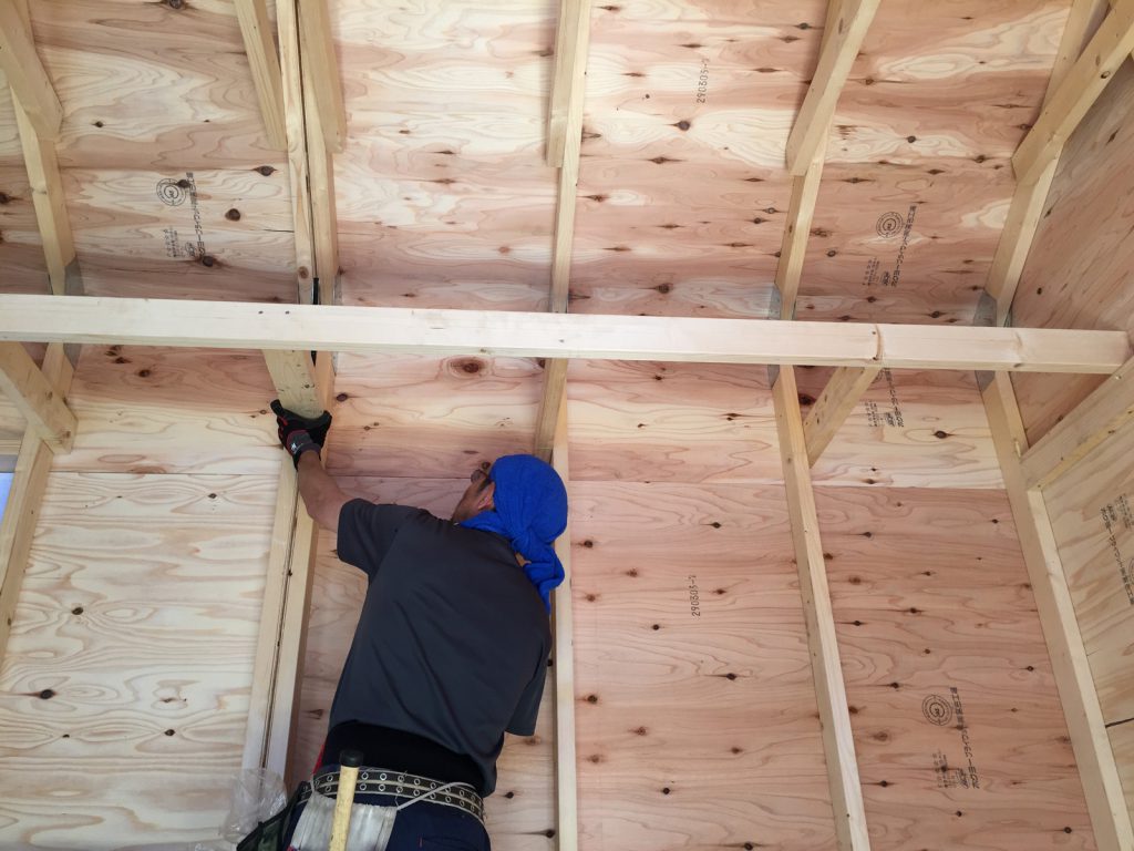 天井部分に角材を取り付け。。