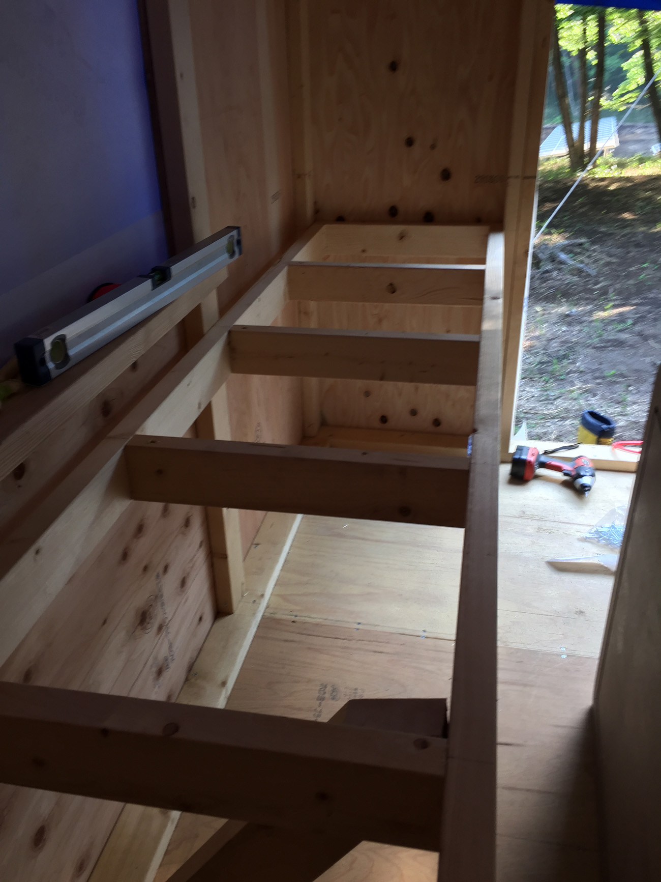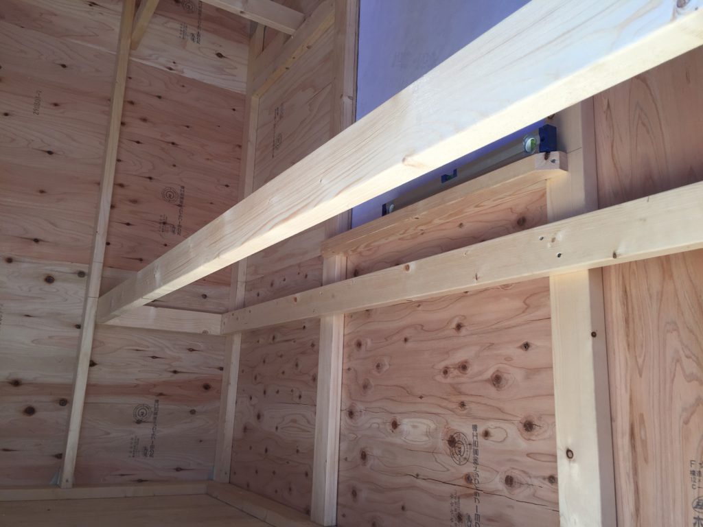 低めの棚も間に木をはめて、棚作業はここまで。。