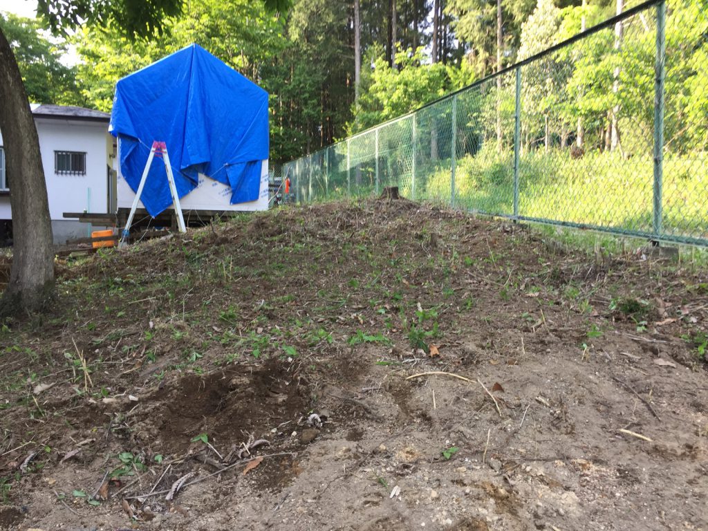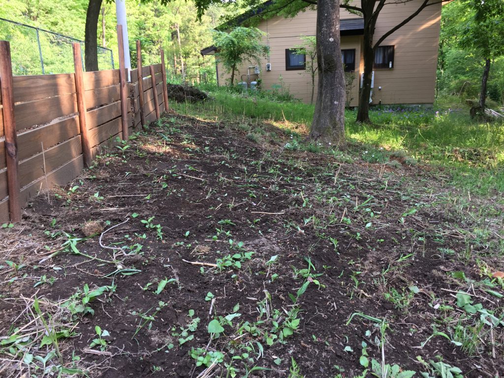 伐採してから、初の雑木林は、適度な日陰で、避暑地っぽい//
