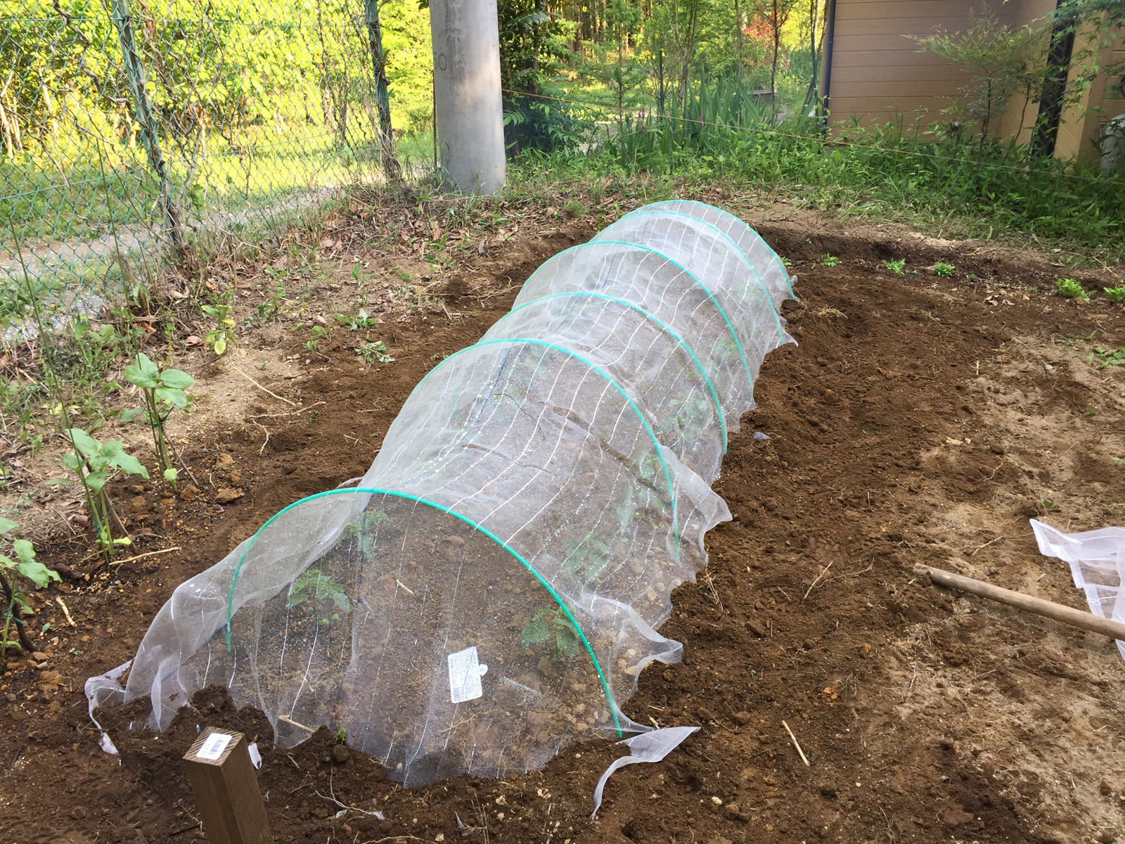 それと、枝豆の鳥被害のために寒冷紗対策。。