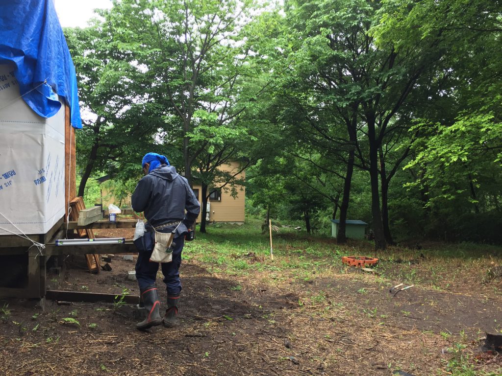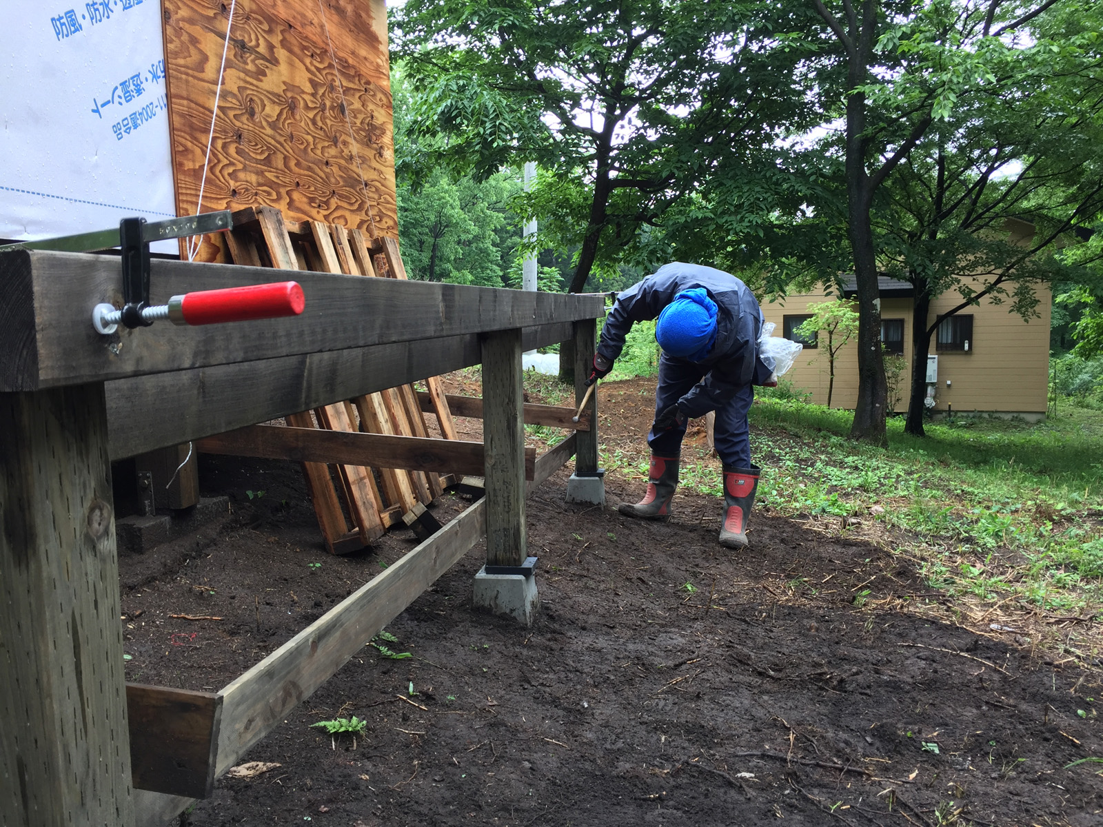 uriは、さっきの材木にこの作業を。。<お願い(^人^)雨降るなよ!!>