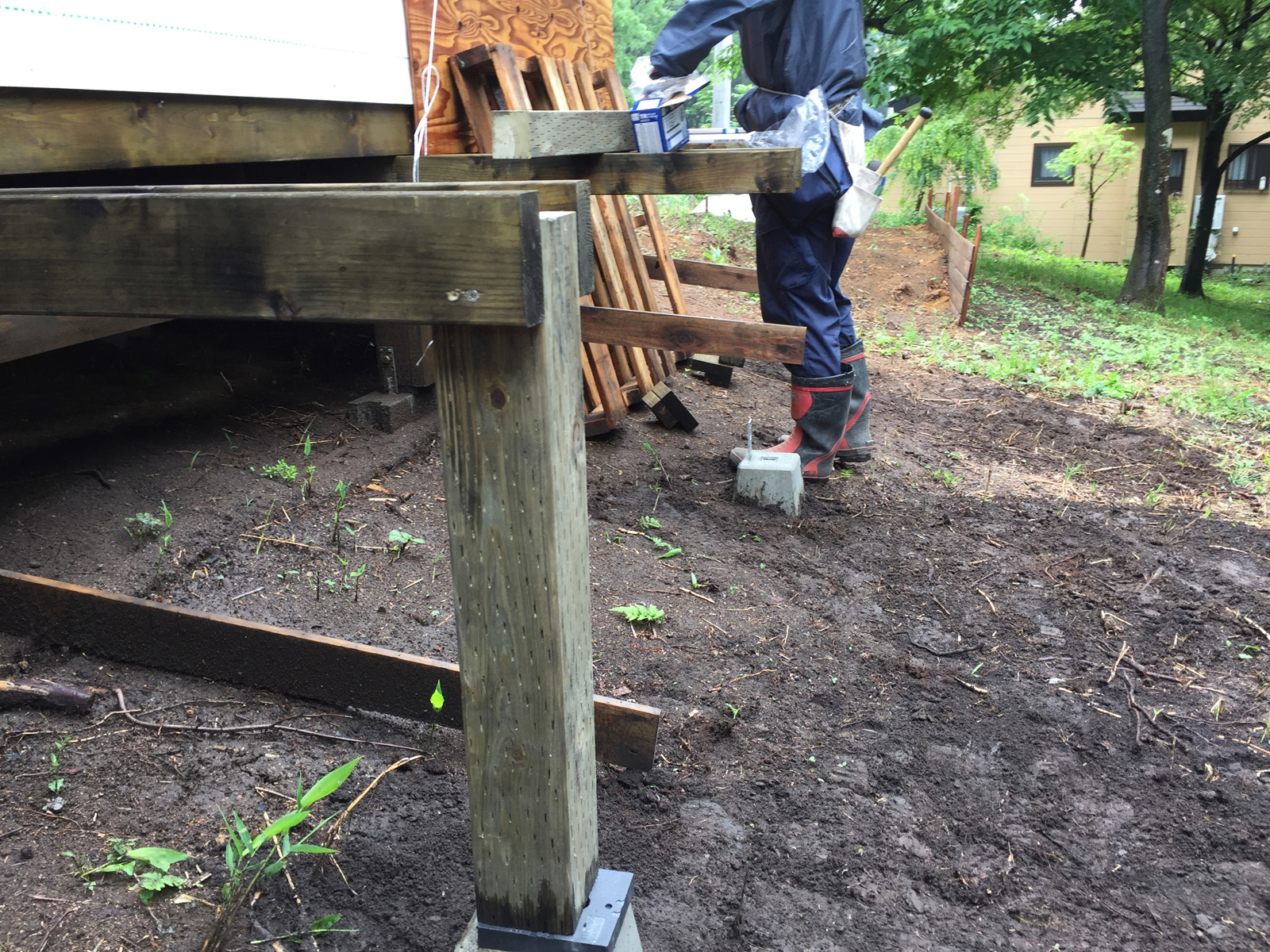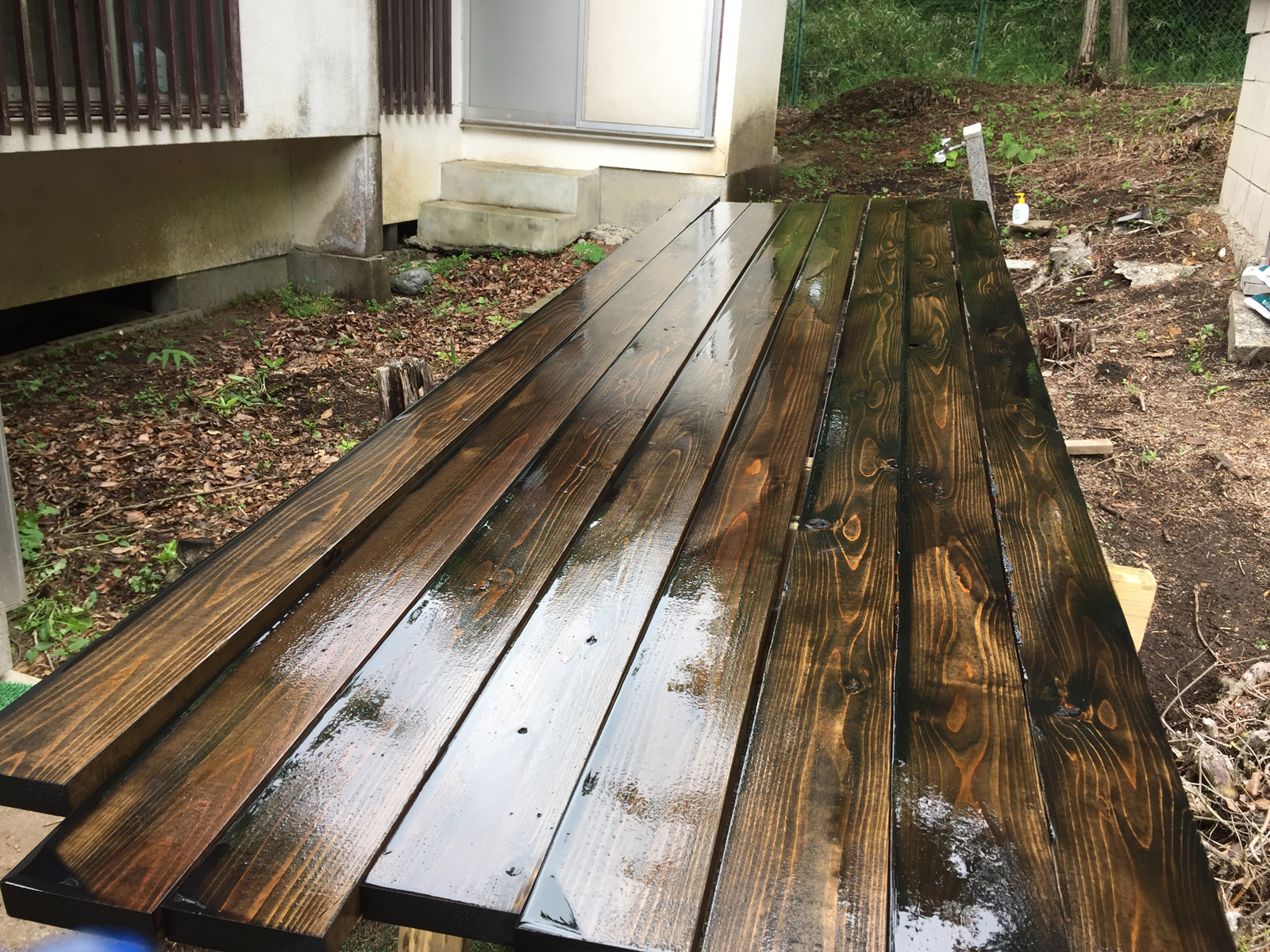 と、ついに雨が、、、ここで、デッキ作業、強制終了。ふぅーっ