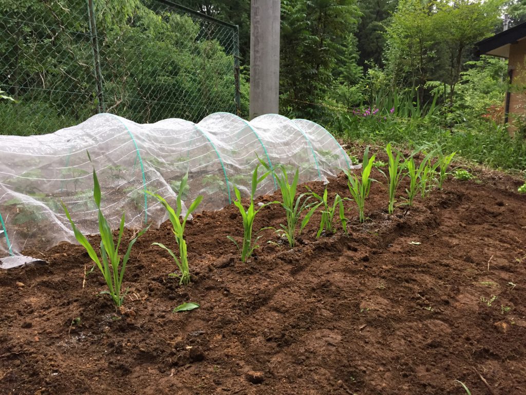 uriは合間、新たにとうもろこしの苗を追加\(*^▽^*)/