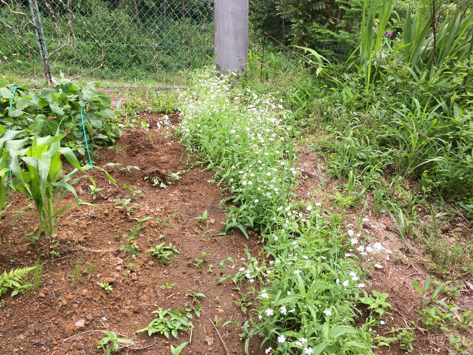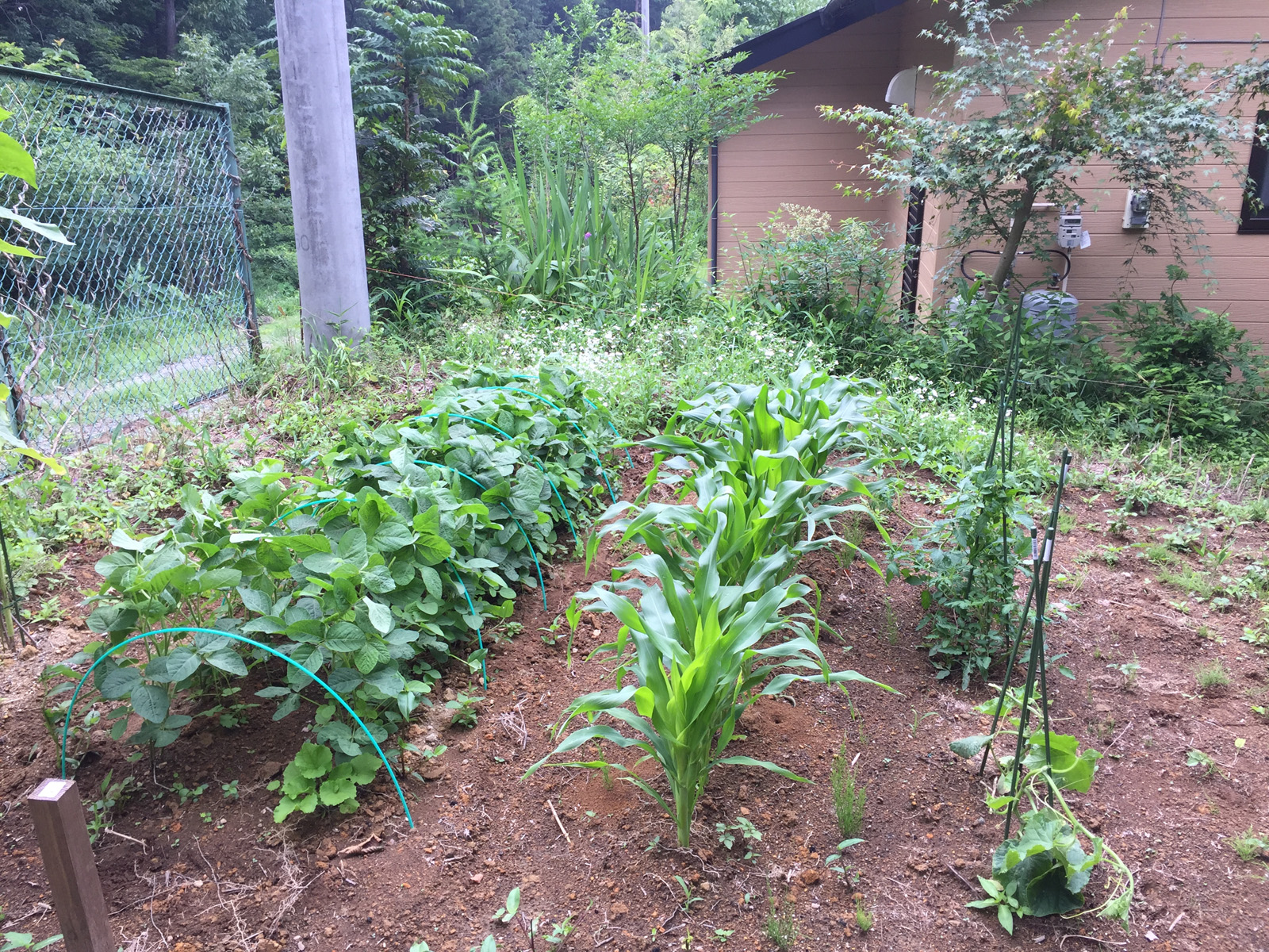 前回より一気に成長してて、枝豆は寒冷紗をはずす//