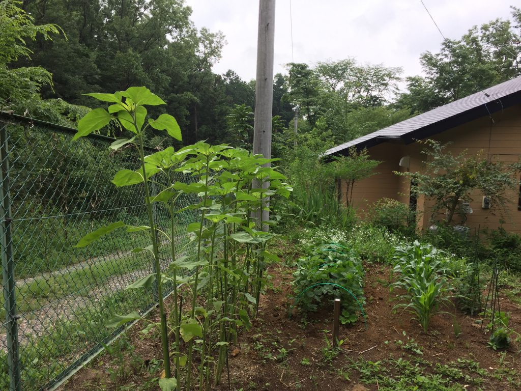 ひまわりの成長が激しく、、すでにuri越えしてる高さ(⌒▽⌒;)